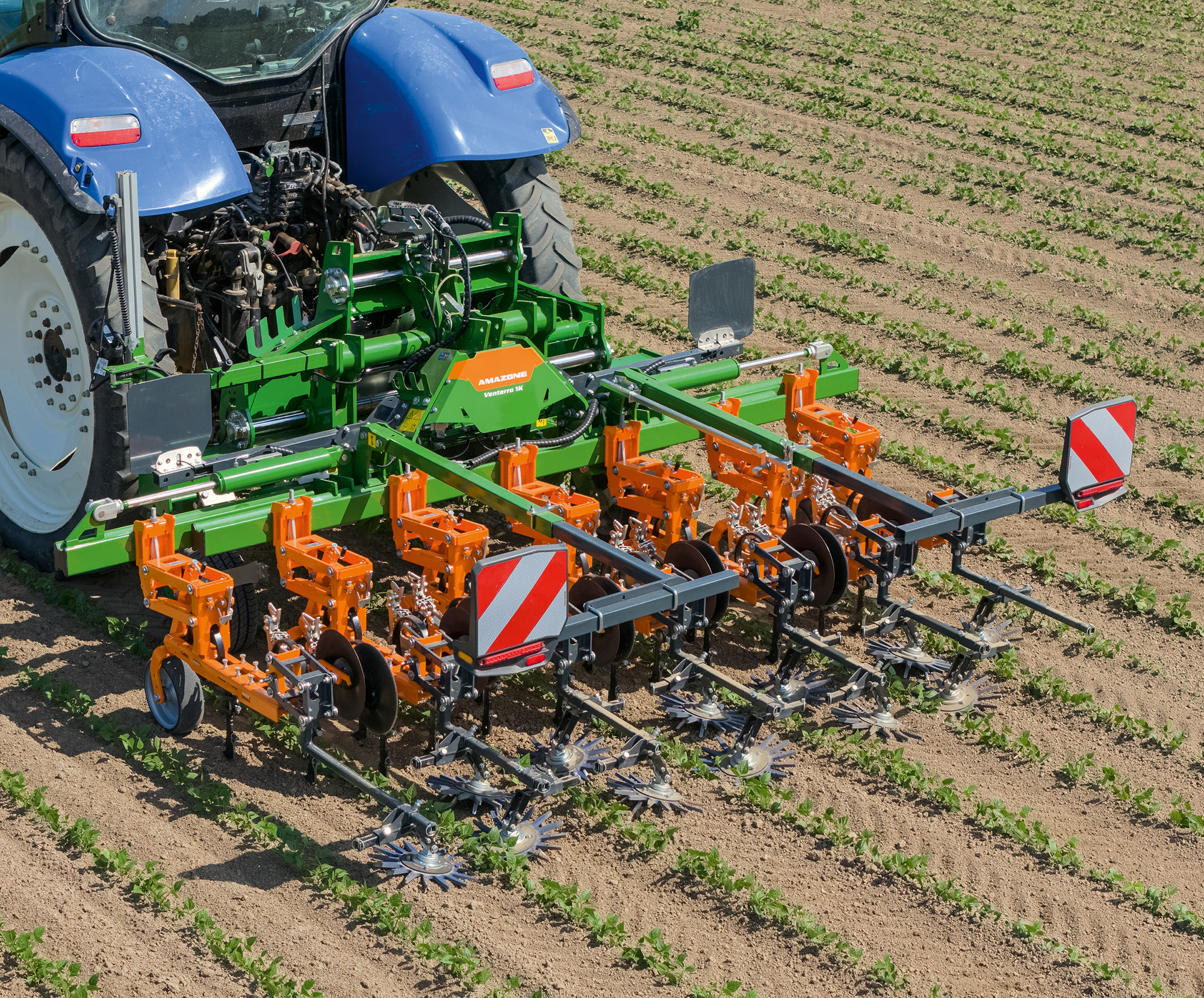 Az AMAZONE a kultivátortechnikai termékcsaládban mostantól az új Venterra 1K-t kínálja, akár 4,20 méteres munkaszélességgel. A könnyű, mindenre alkalmas gépet a kisebb gazdaságok szerkezetéhez és legalább 60 LE traktorokteljesítményéhez terveztük, és a moduláris kialakításának köszönhetően különböző paralelogramma-szerkezetekkel és szerszámokkal szerelhető fel. A precíz sorvezető rendszerek megkönnyítik a hátsó felszereléssel végzett munkát.