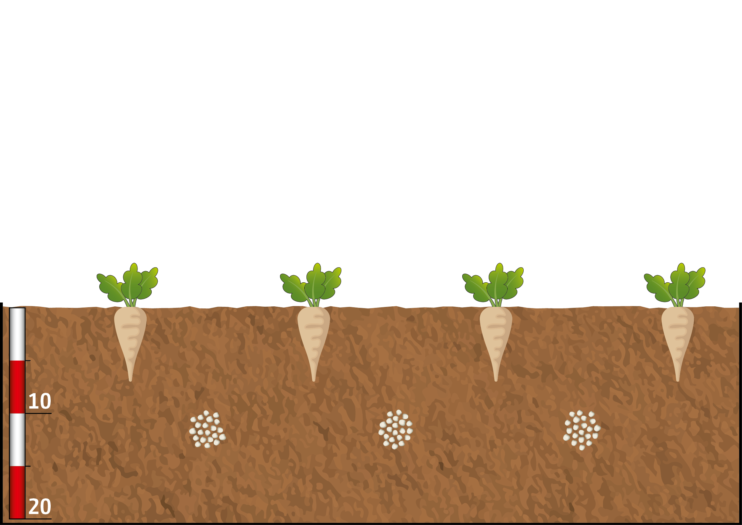 Új lehetőség, hogy alkalmazástól függően a foltszerű adagolás 2 elhelyezett mag között is lehetséges, hogy a finom gyökerekkel rendelkező növénykultúrák, például a cukorrépa ne sérüljenek. Az ISOBUS vezérléssel a traktorvezető megadhatja, pontosan hová kell kerülnie az adagnak: a vetőmag alá vagy két vetőmag közé.
