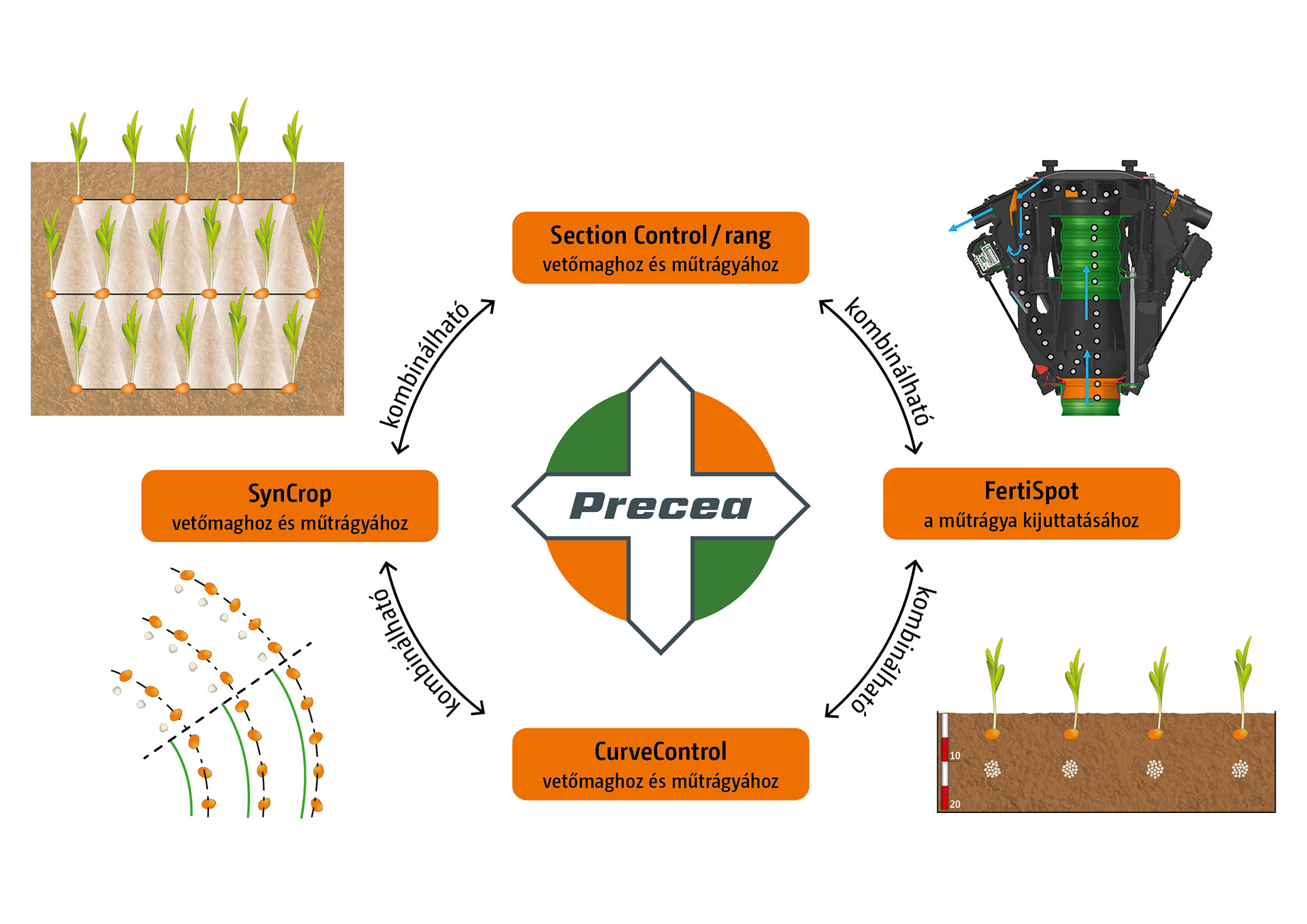 Az innovatív megoldások, amelyek révén a vetőmag és a műtrágya precízen kijuttatható a Precea szemenkénti vetőgépekkel, maximális kompatibilitást biztosítanak
