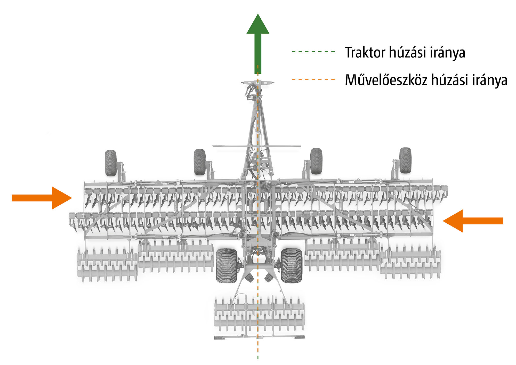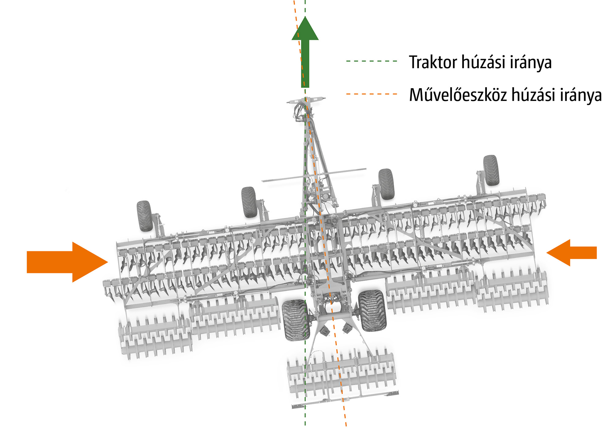 Ez alapvetően annyit jelent, hogy a gép nem követi pontosan a traktor nyomvonalát, függetlenül attól, hogy domboldalon vagy erősen változó sík talajon halad, ami nem optimális erőgörbét eredményez a szerelvénynél.
