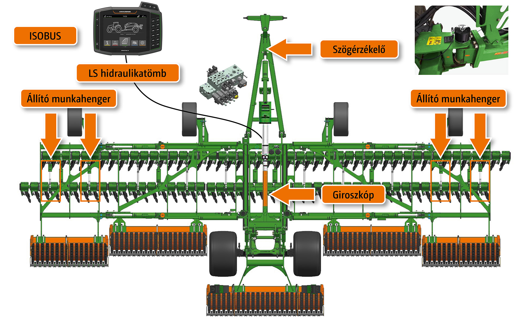 Ennek a kihívásnak a megoldására az AMAZONE az Agritechnica 2025 kiállításon bemutatja az AutoLane nevű új, innovatív rendszert, amely kiegyenlíti a rövidtárcsák domboldali eltérülését, és kompenzálja a dupla áthaladásokat és a területek kimaradását domboldalon és változó talajviszonyok között. Ennek során a vontatott rövidtárcsa traktorhoz képesti eltérülését egy szögérzékelő folyamatosan méri, az AmaTron 4 ISOBUS terminál pedig feldolgozza. A rövidtárcsa dőlésszögét domboldalakon egy giroszkóp méri aktív helyzetméréssel.