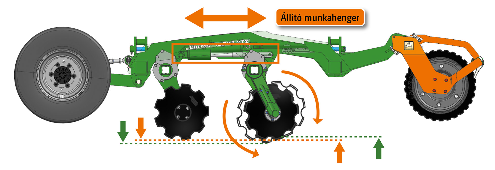 - Az AMAZONE Catros-2TX rövidtárcsák az AutoLane rendszernek hála a legkülönbözőbb körülmények között is pontosan követik a traktor nyomvonalát. Nem számít, hogy domboldalakon vagy rendkívül változó talajviszonyok között dolgoznak.