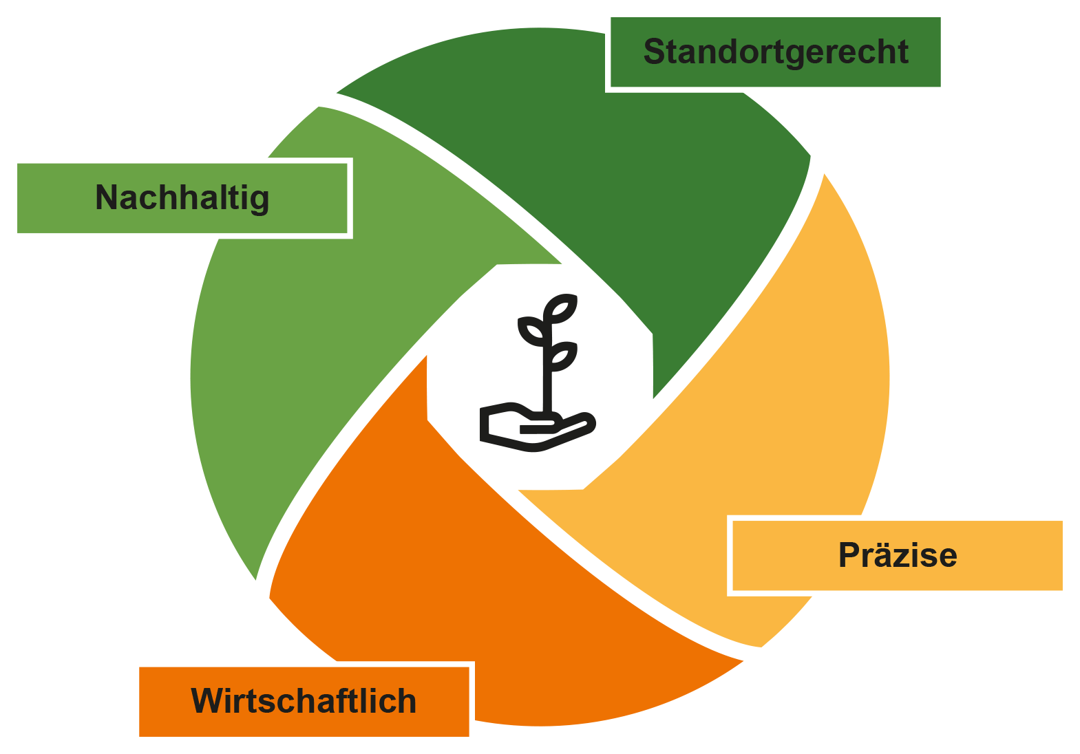 Annak érdekében, hogy a gazdálkodók a lehető legjobb támogatásban részesülhessenek e cél eléréséhez, az AMAZONE 4 cselekvési területen határozta meg az „intelligens növénygazdálkodás” fogalmát: „termőhelynek megfelelő gazdálkodás”, „pontosság”, „gazdaságosság” és „fenntarthatóság”.
