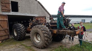Durch einen befreundeten Landwirt wurde Herr Schwope auf einen Kirowez K-700A aufmerksam, der seit 30 Jahren in dessen Feldscheune in Vergessenheit geraten war. Der Entschluss, den Traktor vor seiner endgültigen Verschrottung zu retten, war schnell gefasst. Das „Ungetüm“ musste aus der Scheune raus, um es zu einem geeigneten Demontageort zu transportieren. Aus eigener Kraft war das nicht machbar. Die Ansteuerung der Lenkzylinder wurde so umgebaut, dass mit einem Traktor und Fremdlenkung durch dessen Hydraulikanlage, ein Transport aus der Scheune zum Tieflader möglich war.