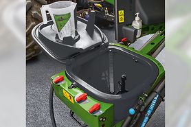 A 60 literes bekeverőtartály közvetlenül a kezelőszervek előtt található. A tartály kúpos alakja a központi kifolyóval és a 200 l/perc értéket is elérő hatalmas szívóteljesítménnyel garantálja a gyors, gond nélküli feltöltést, valamint a maradéktalan kiürítést.