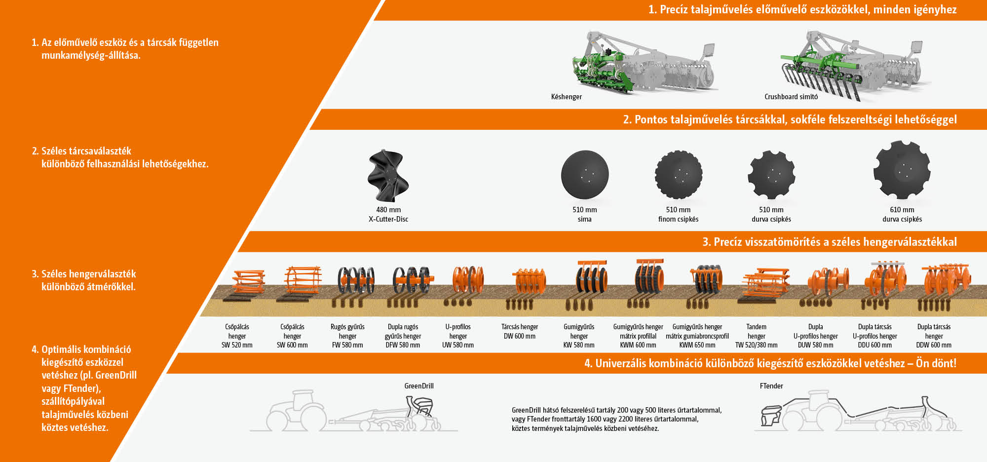 - Az egyenletes művelés megakadályozza a gyomok és az árvakelésű gabona betemetését, és optimális csírázási feltételeket szavatol