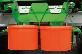 A kalibráló berendezés segítségével ellenőrizheti a műtrágya átáramlási sebességét. Így a kiszórási mennyiséget pontosan meg tudja határozni.