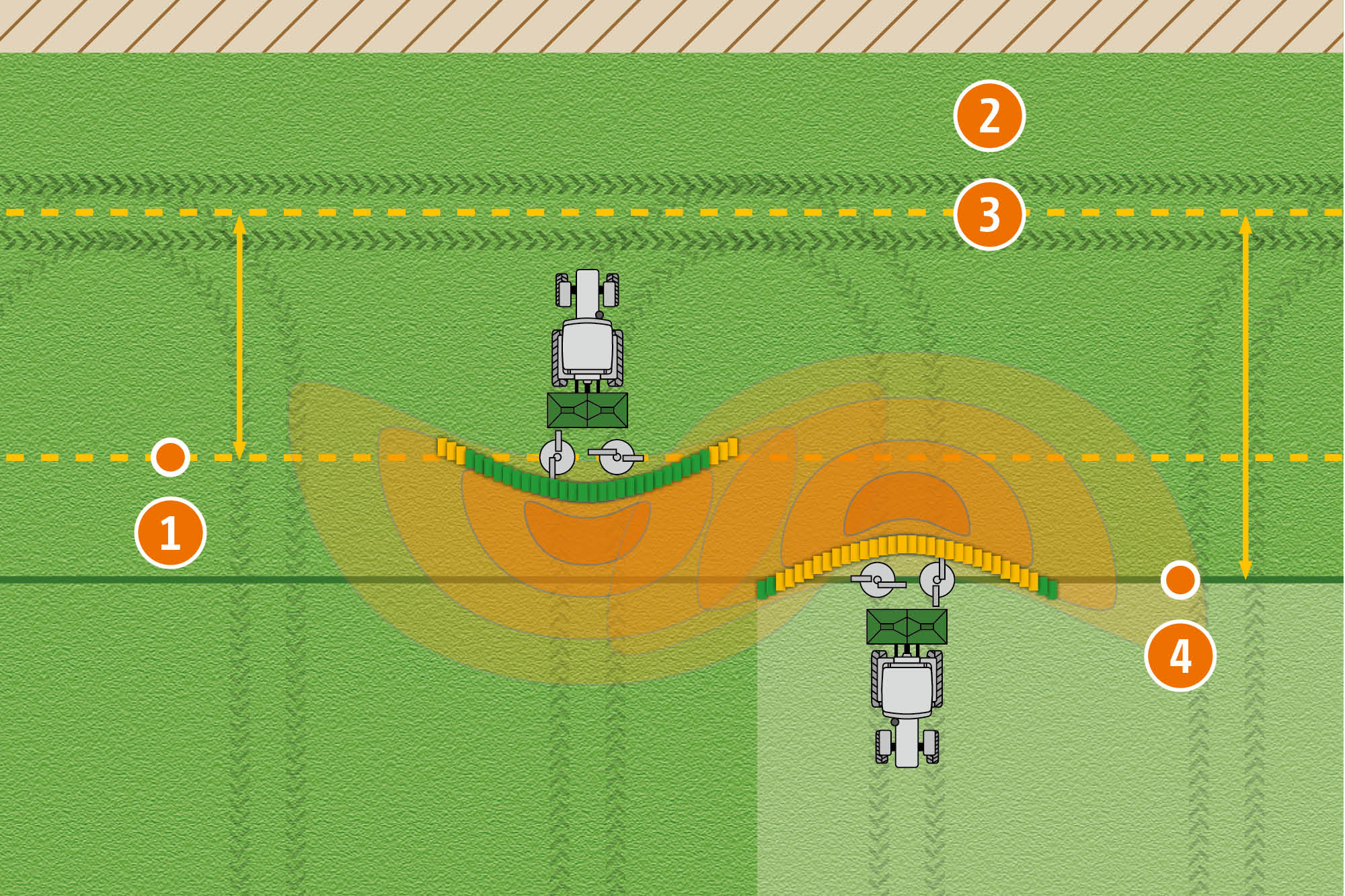 A HeadlandControl jellemzői a munkaszélességtől, a szórótárcsától és a műtrágyától függően változnak. Emiatt a HeadlandControl minden egyes munkamenethez egyedileg számítja ki az optimális szórási felületet.