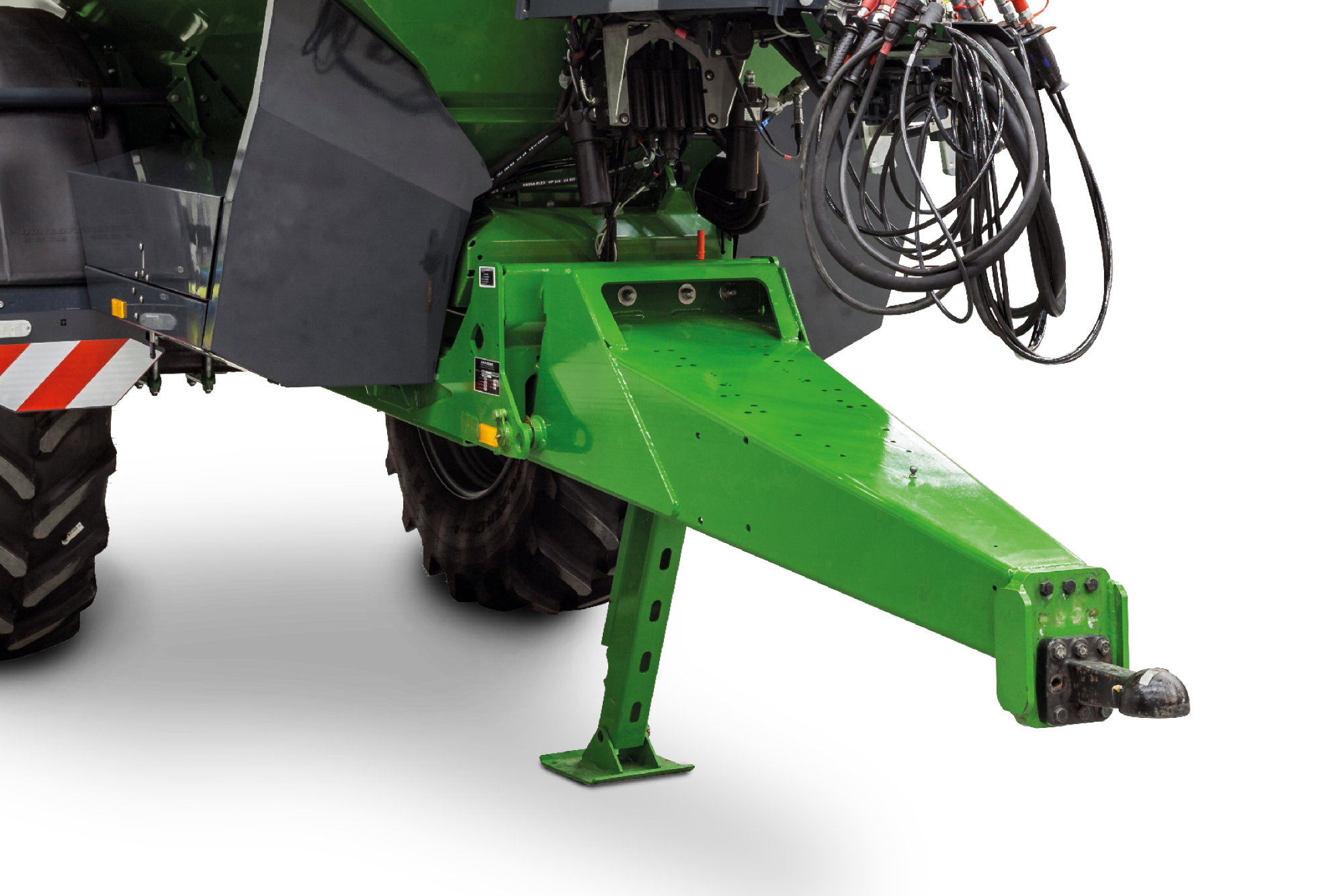 A 5 fokos emelkedésű szállítószalag gondoskodik a hátulról előre történő ürítésről. Ez optimális terheléseloszlást garantál szórás közben. A maximális vonórúdterhelés és a kisebb tengelyterhelések lehetővé teszik a biztonságos haladást a területen, mindenféle alkalmazási feltétel között.