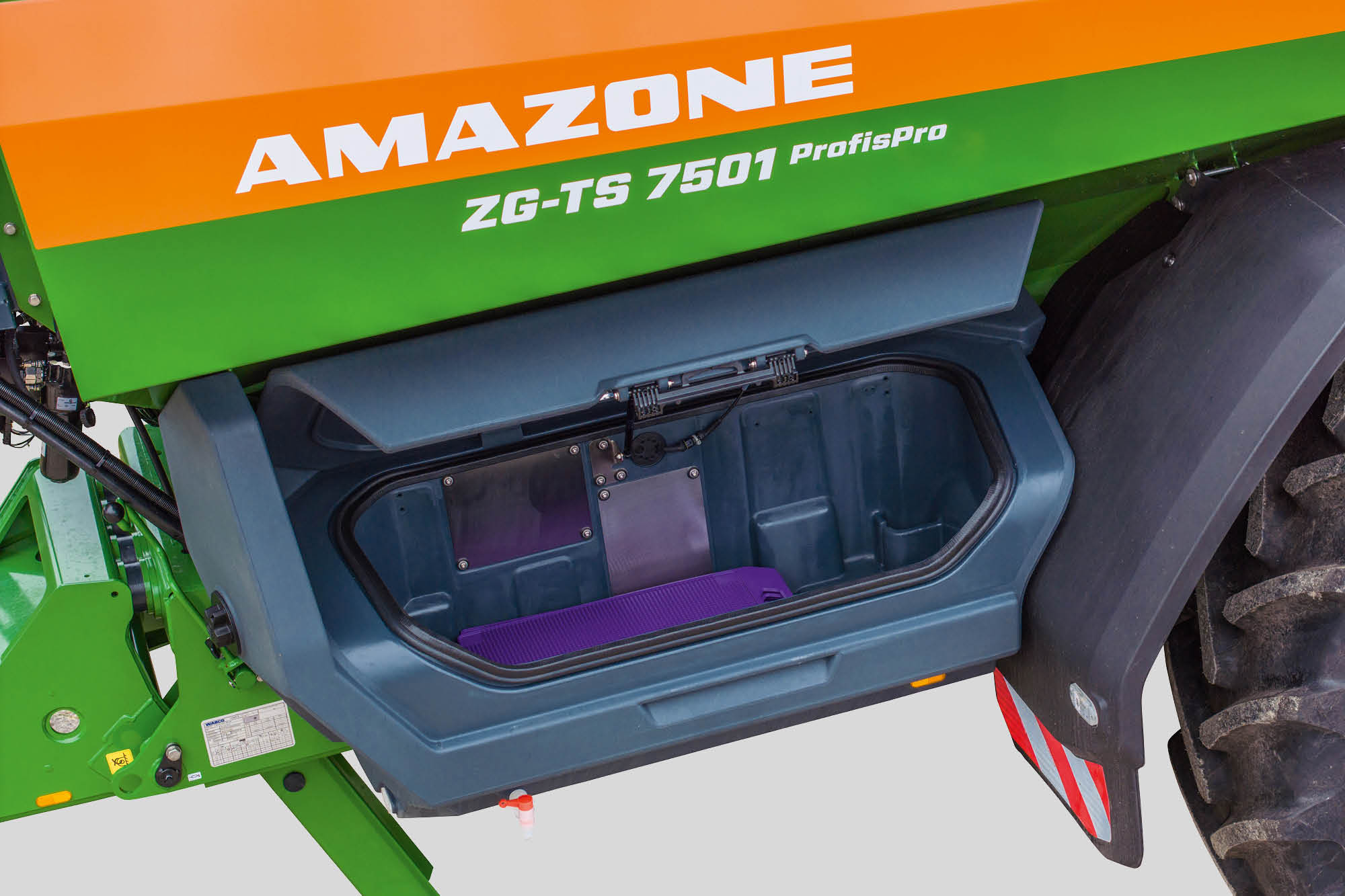 A 7 500, illetve 10 000 literes tartálytérfogattal rendelkező ZG-TS terméktípusok rendkívül ütőképesek és ideálisak az olyan nagy üzemi struktúrák esetében, amelyek különösen nagy hangsúlyt helyeznek a pontosságra. Méretüknek köszönhetően értékes menetidő és rakodási idő takarítható meg. A tartály nagy nyílása lehetővé teszi a kényelmes feltöltést akár rakodóval, akár a silóról. A középre igazított szállítószalag biztosítja a műtrágya optimális áramlását.