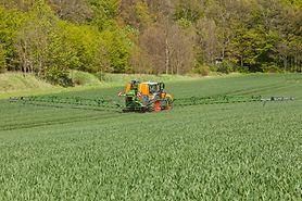 SCHMOTZER Venterra 2K sorközművelő kultivátor és AMAZONE FTender 1600 fronttartály kombinációja egy menetben történő gyomirtáshoz és műtrágyázáshoz.