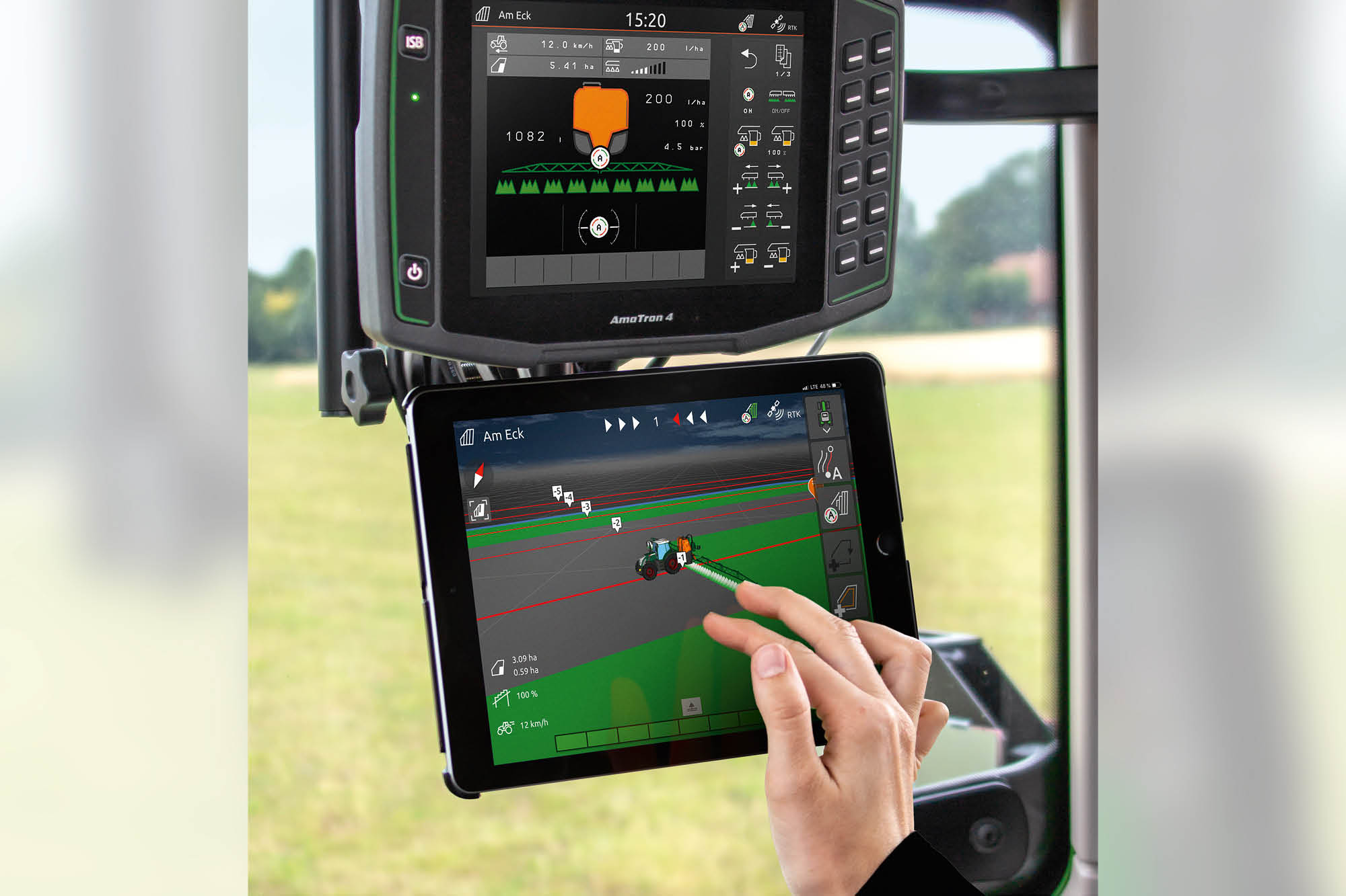 Az AmaTron Twin alkalmazás még nagyobb kényelmet kínál a gépkezelőnek munka közben azzal, hogy lehetőséget ad a térképes nézet GPS-funkcióinak táblagéppel történő használatára a gép AmaTron 4 terminálon történő kezelésével párhuzamosan.