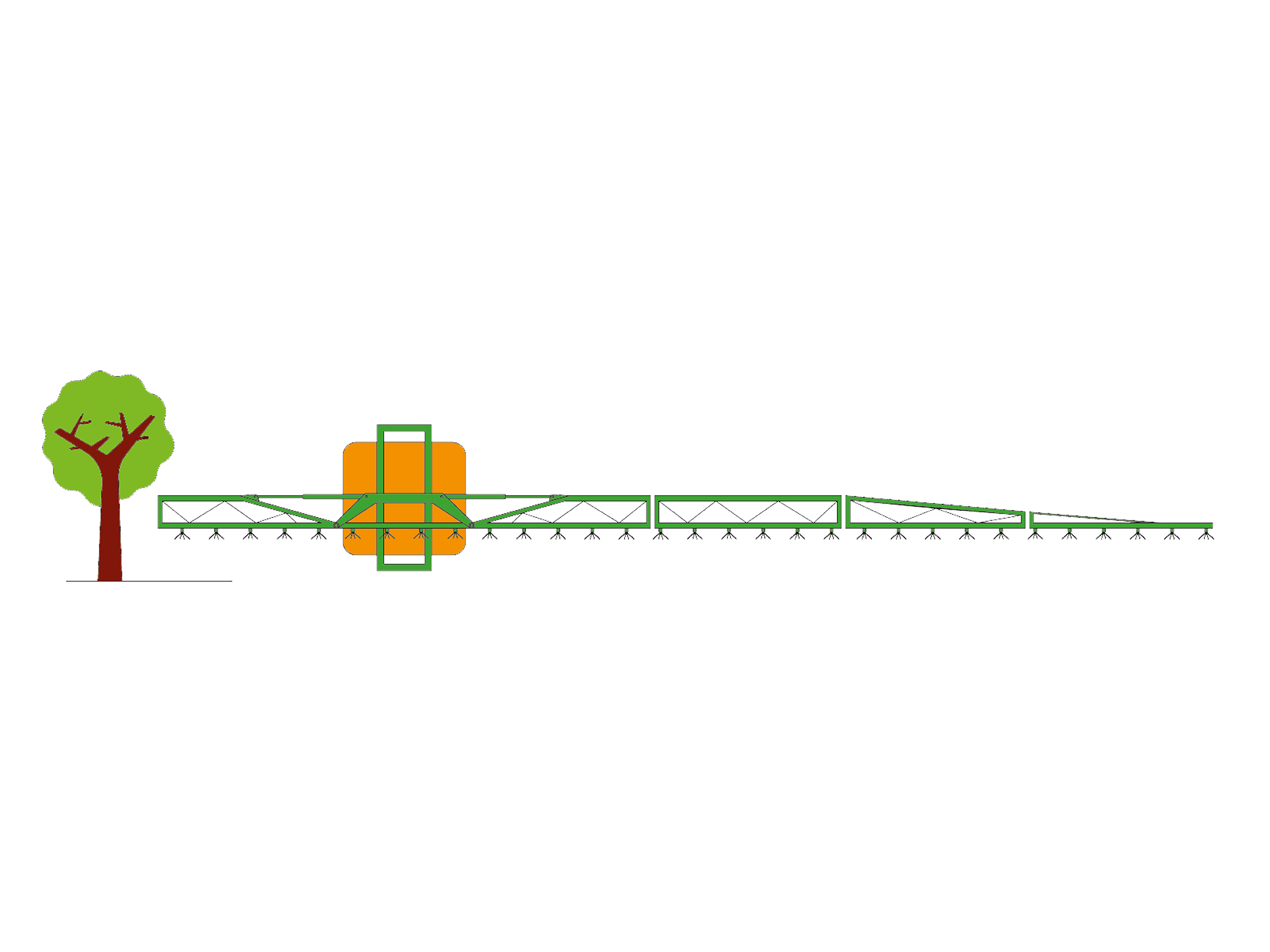 A szórókeretről nem csöpög permetlé a traktorra vagy a kezelőközpontra, és a szórókeret nem ér hozzá a vezetőfülkéhez sem.