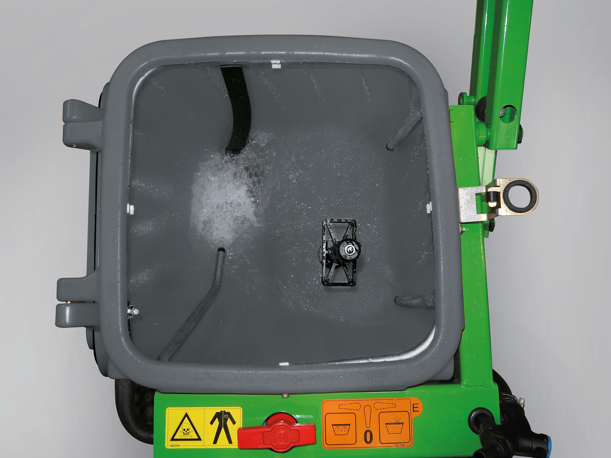 A 6 liternél kevesebb végső visszamaradó mennyiség és a bőséges tisztavíz-mennyiség garantálja a nagyon tökéletes tisztítási folyamatot már a szántóföldön.