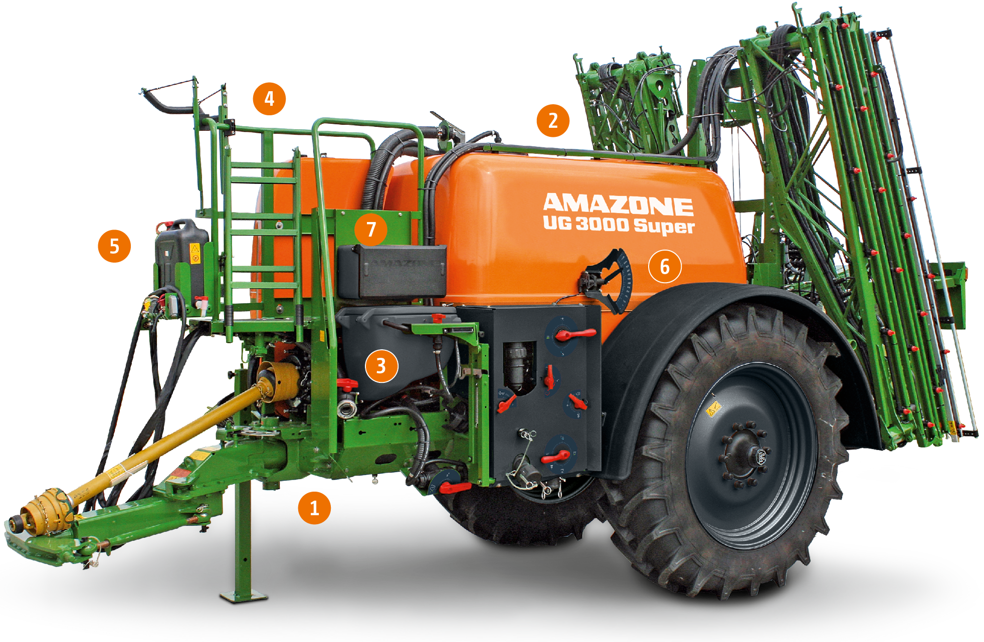 4. Űrtartalmú tisztavizes öblítőtartály a permetlétartályban visszamaradó mennyiség felhígításához vagy a permetezőgép tisztításához, akár feltöltött permetlétartály mellett is.
