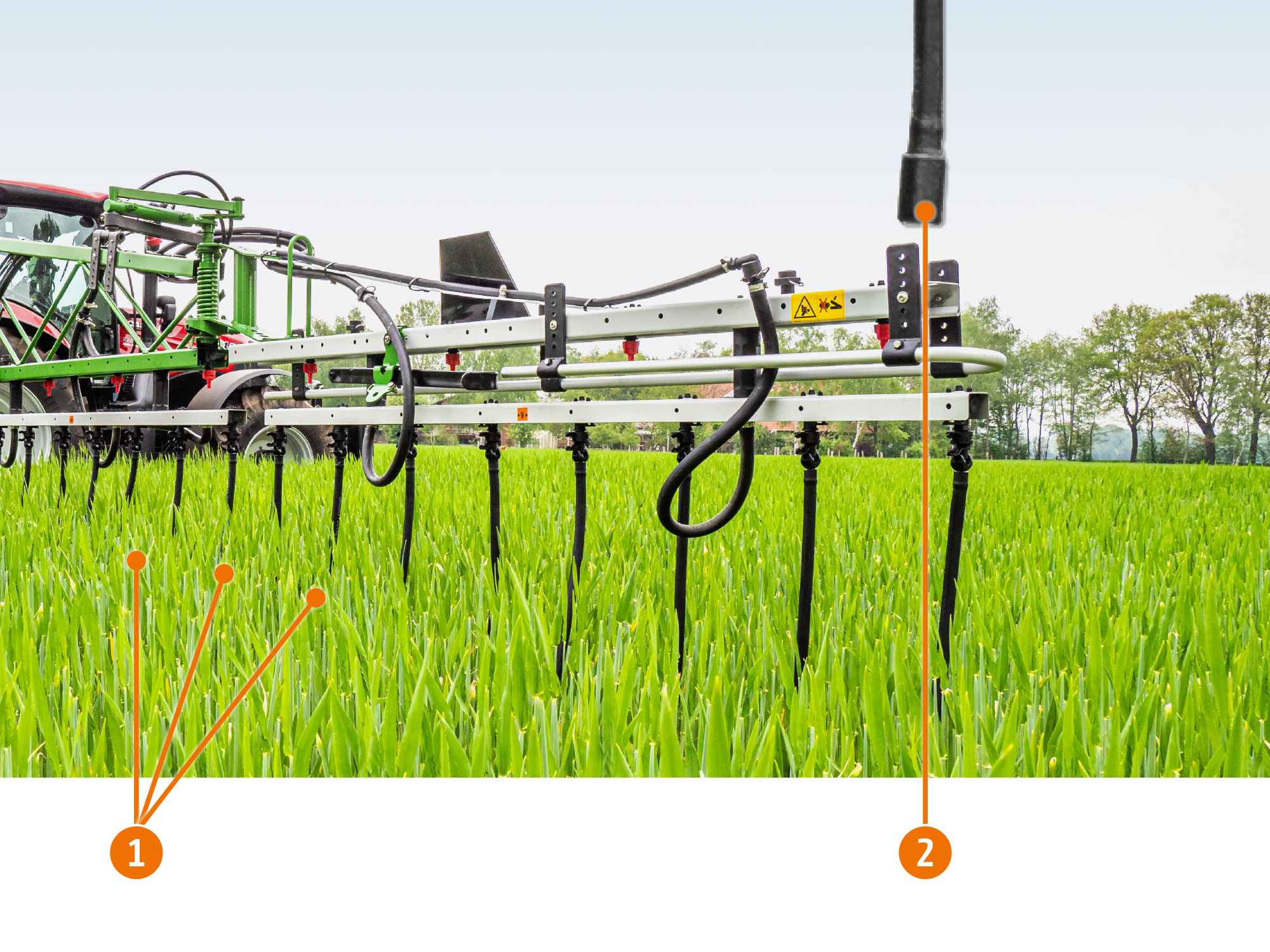 Az AMAZONE növényvédelmi permetezőgépekkel kombinálva elegáns megoldások is lehetségesek a sikeres levélfonák permetezésre. A Lechler cég Dropleg rendszere például egy könnyű és erős, a sorokra keresztben szabadon lengő levélfonák-permetező megoldás, amely a legprofesszionálisabb igényeknek is megfelel.