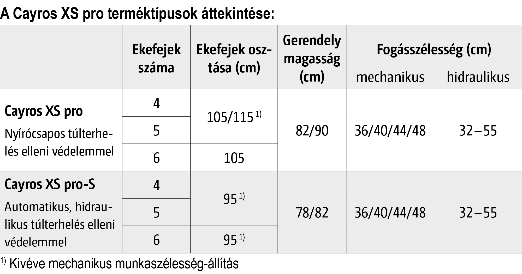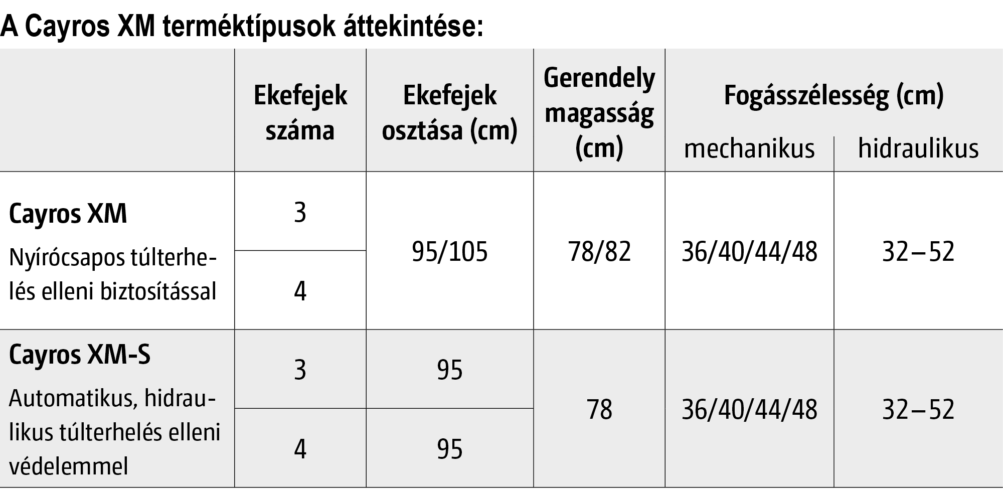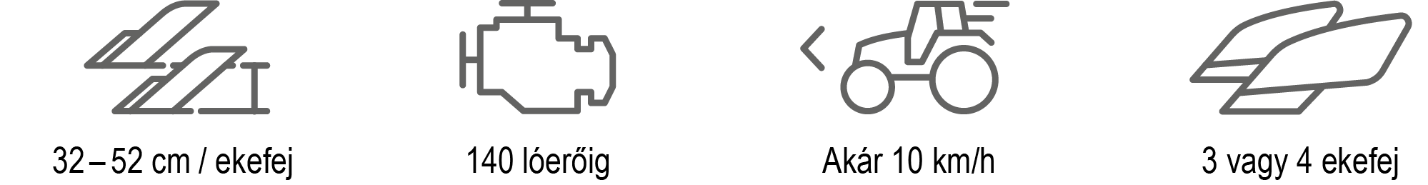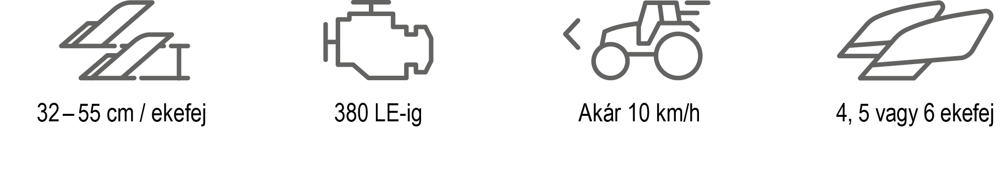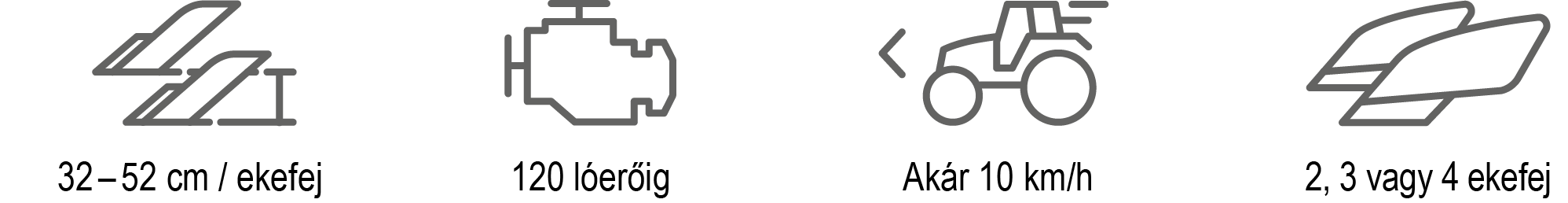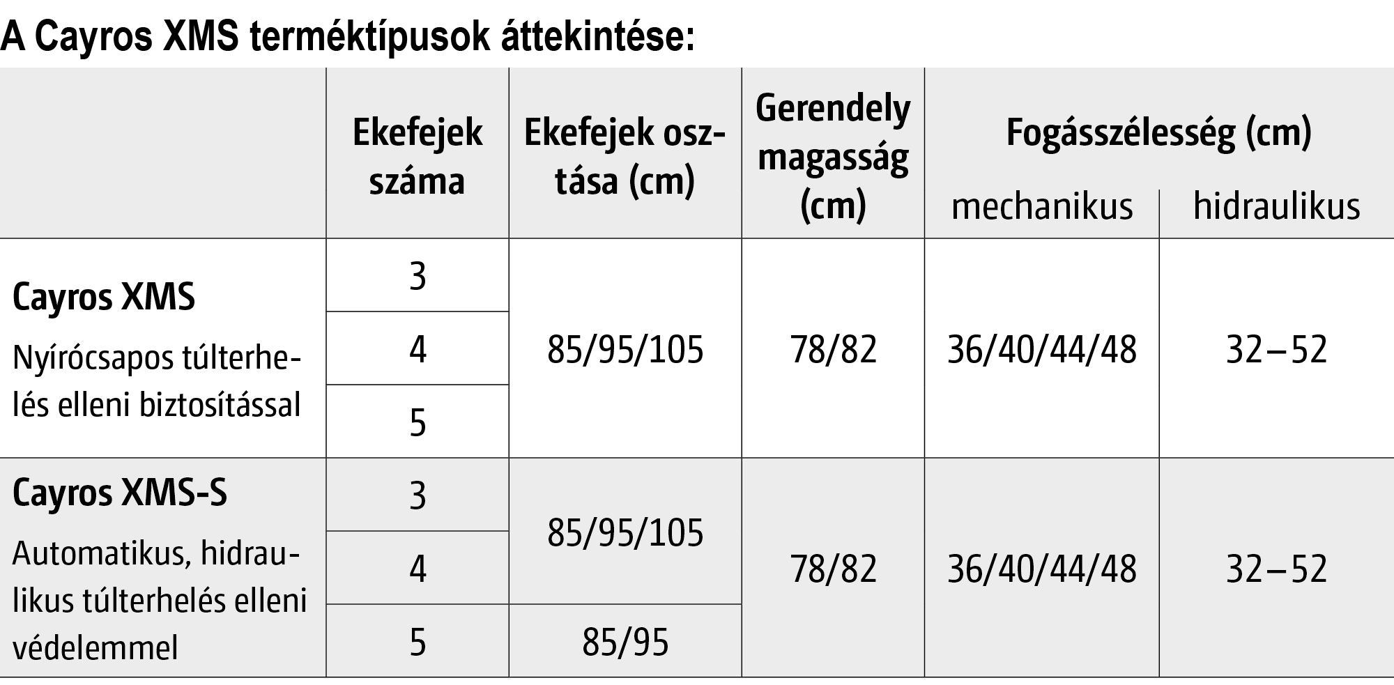 A különösen ötletes felépítésű, kényelmesen állítható fordítómű és a kiemelkedően változatos felszereltség sokoldalú és univerzális ekévé teszi a Cayros XMS gépet max. 132 kW/180 LE teljesítményű traktorokhoz.