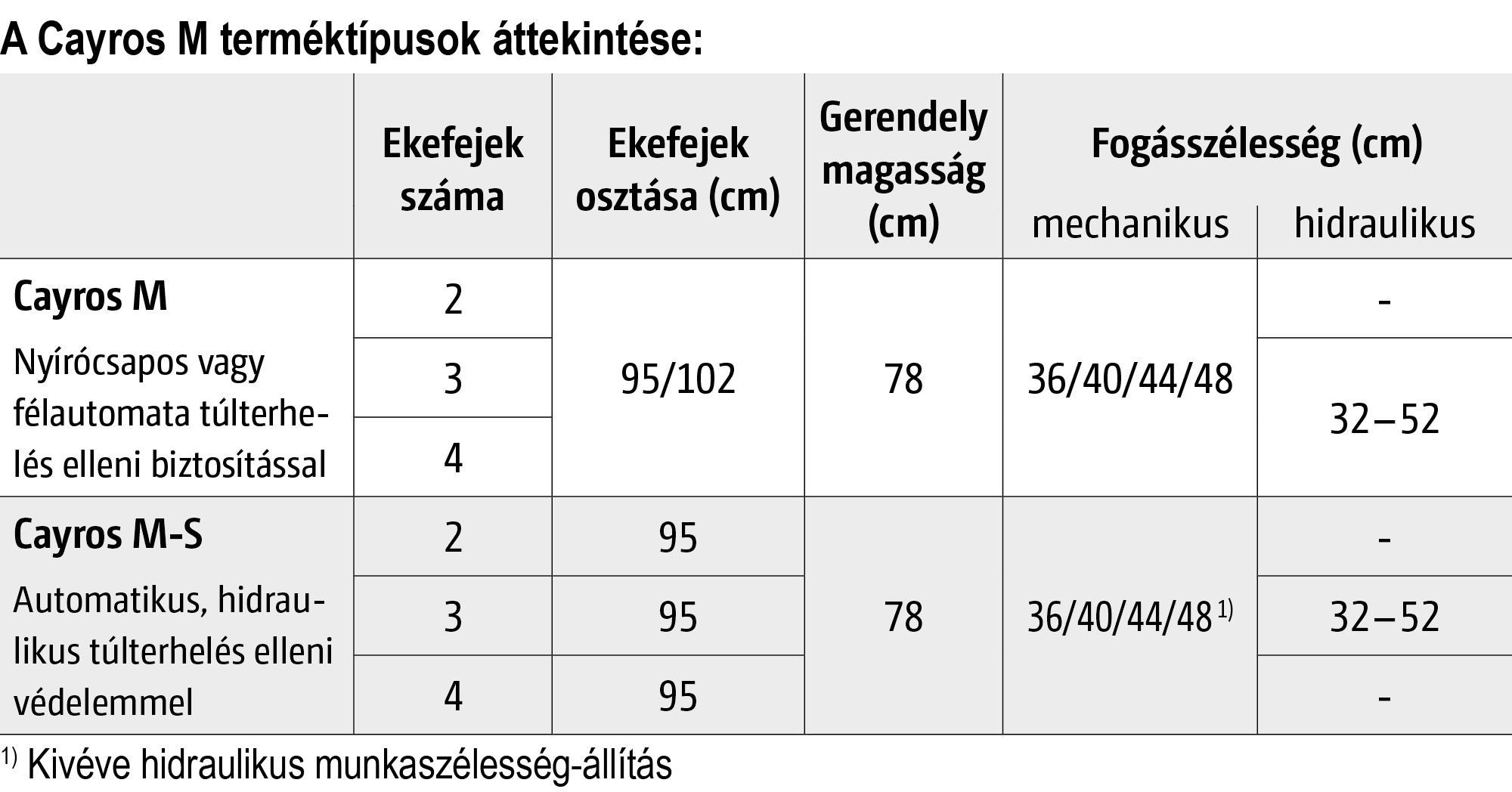 - 3 hosszirányú ekefejtávolság választható (típusfüggő)