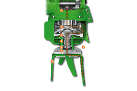 - Dupla tömítés olajszivárgás ellen tengelytömítő kazettával, illetve labirinttömítés a növényi rostok és a szennyeződés behúzása ellen