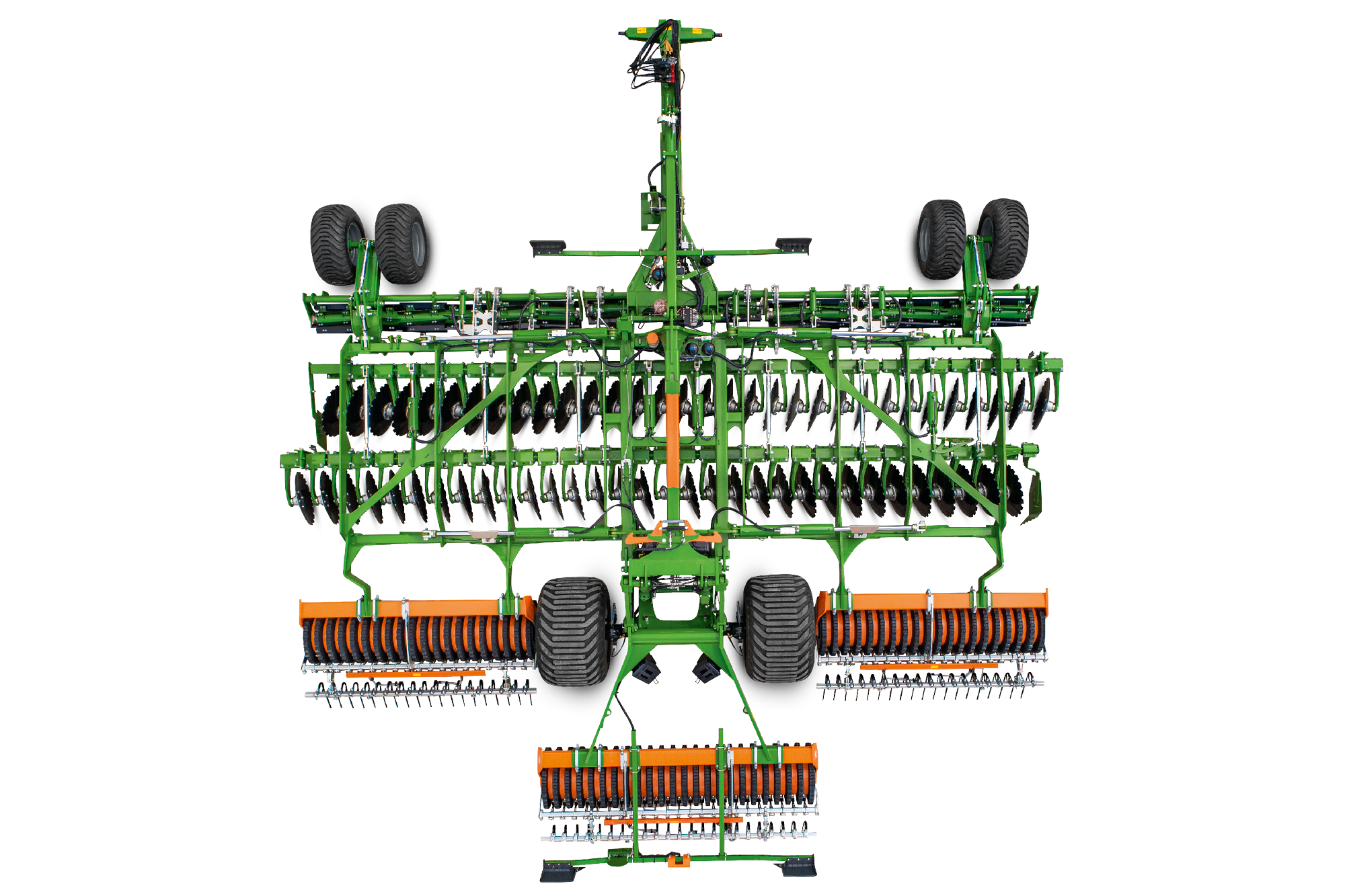 A 7 m, 8 m, 9 m és 12 m munkaszélességű Catros-2TX vontatott gépek alapfelszereltségéhez tartozik egy forgatható középső futómű középső és külső szegmensekkel. A középső futómű rendkívül csendesen működik, mivel a középső szegmens a traktor tengelyén és a hengerén, a külső szegmensek pedig a mankókerekeken és a hengereken futnak. A súly a szegmensek tárcsáira hat, és nehéz körülmények között javítja a behúzást. Közúton a széles gumiabroncsokkal felszerelt, középen elhelyezkedő futómű gondoskodik a kényelmes szállításról. A középső futóműnek köszönhetően a Catros-2TX gépek rendkívül fordulékonyak.