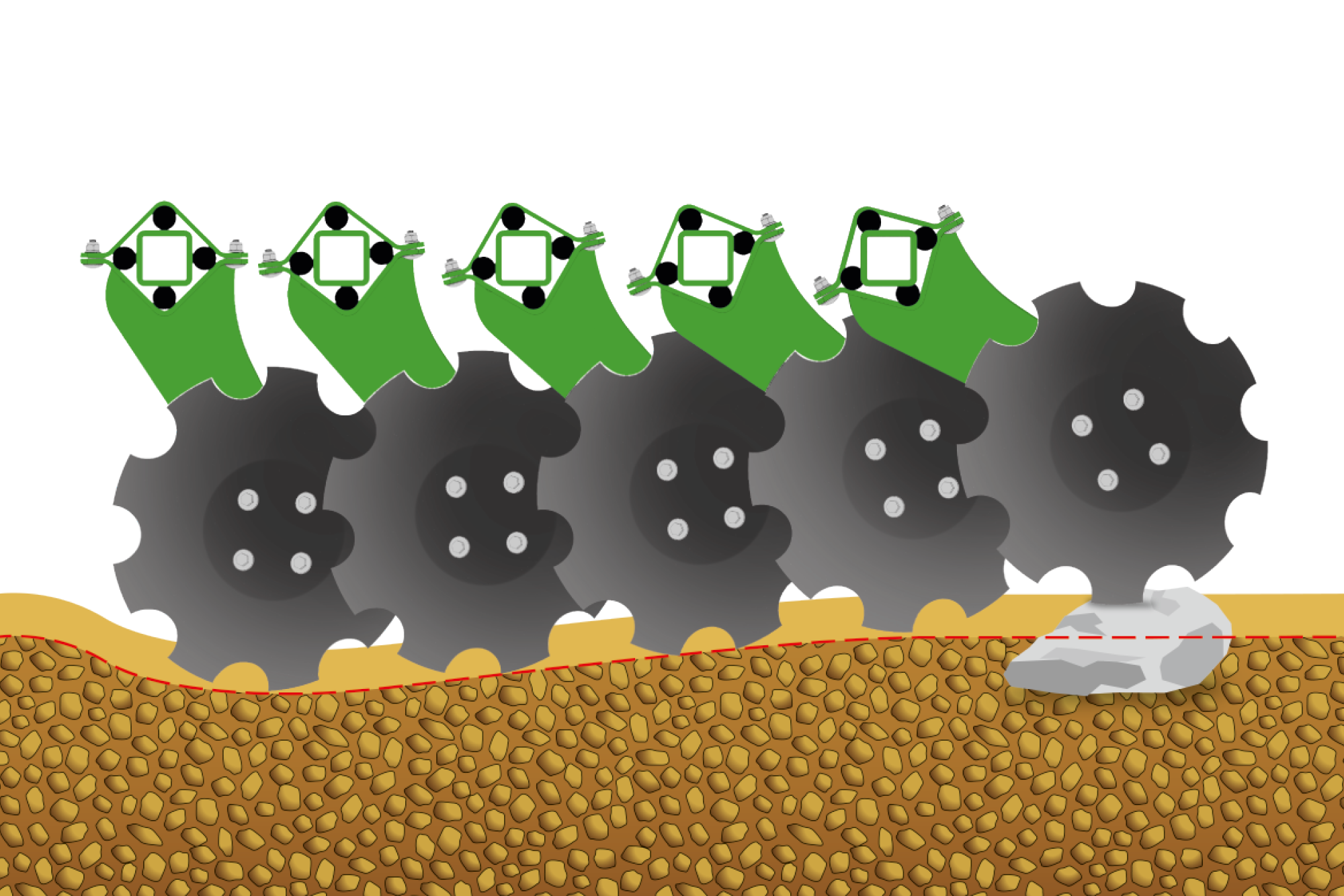 Az egyenkénti tárcsafelfüggesztés ideális talajkövetést biztosít még köves talajon is