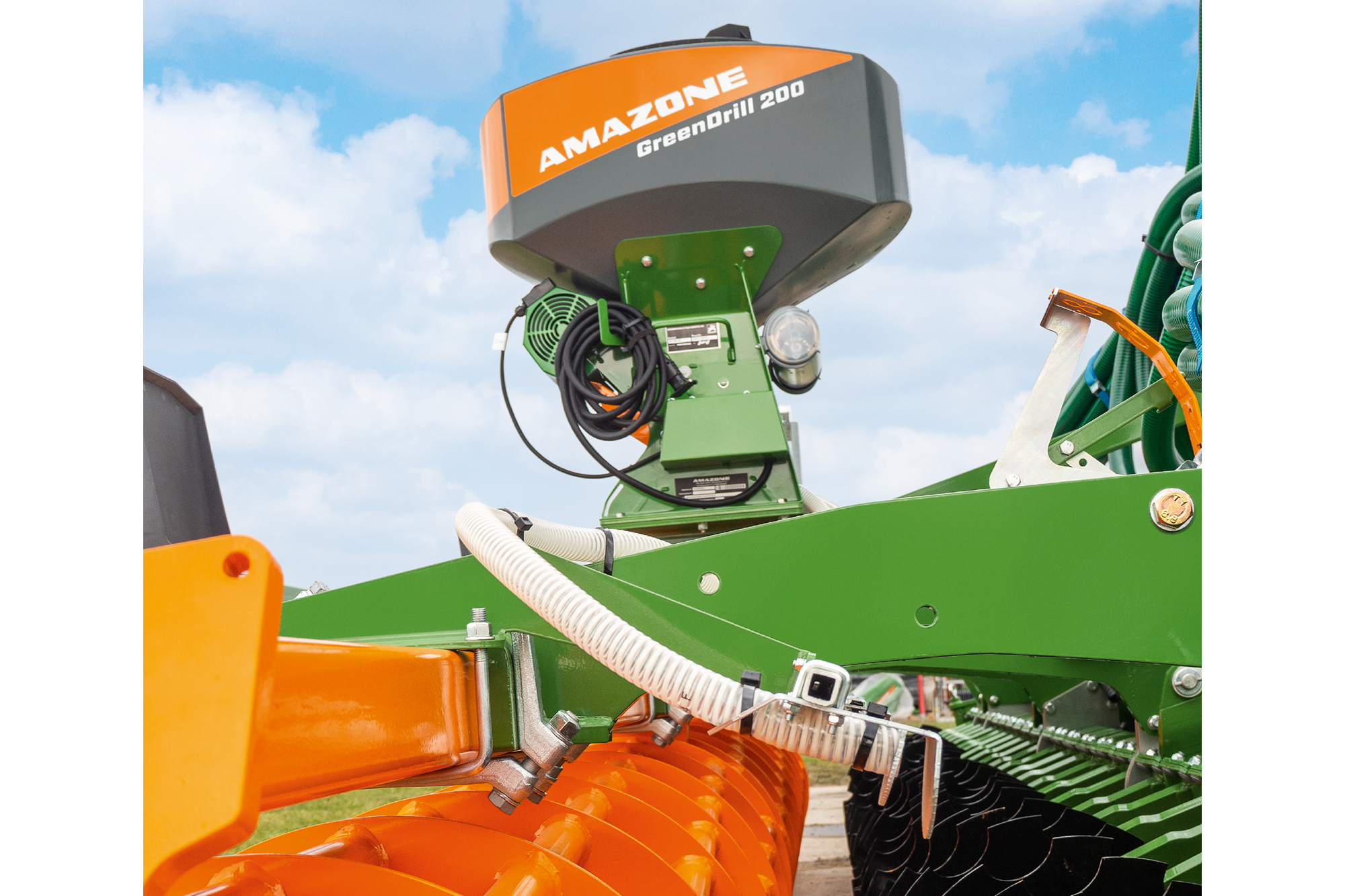 A köztes termények közvetlenül vagy a talajművelő gép segítségével történő vetéséhez az AMAZONE a függesztett terméktípusokhoz a GreenDrill 200, a vontatott terméktípusokhoz pedig a GreenDrill 501 hátulra szerelt tartályt ajánlja. A GreenDrill vetőmagtartályának térfogata 200 l vagy 500 l. A tartály lépcsőn keresztül könnyen elérhető.