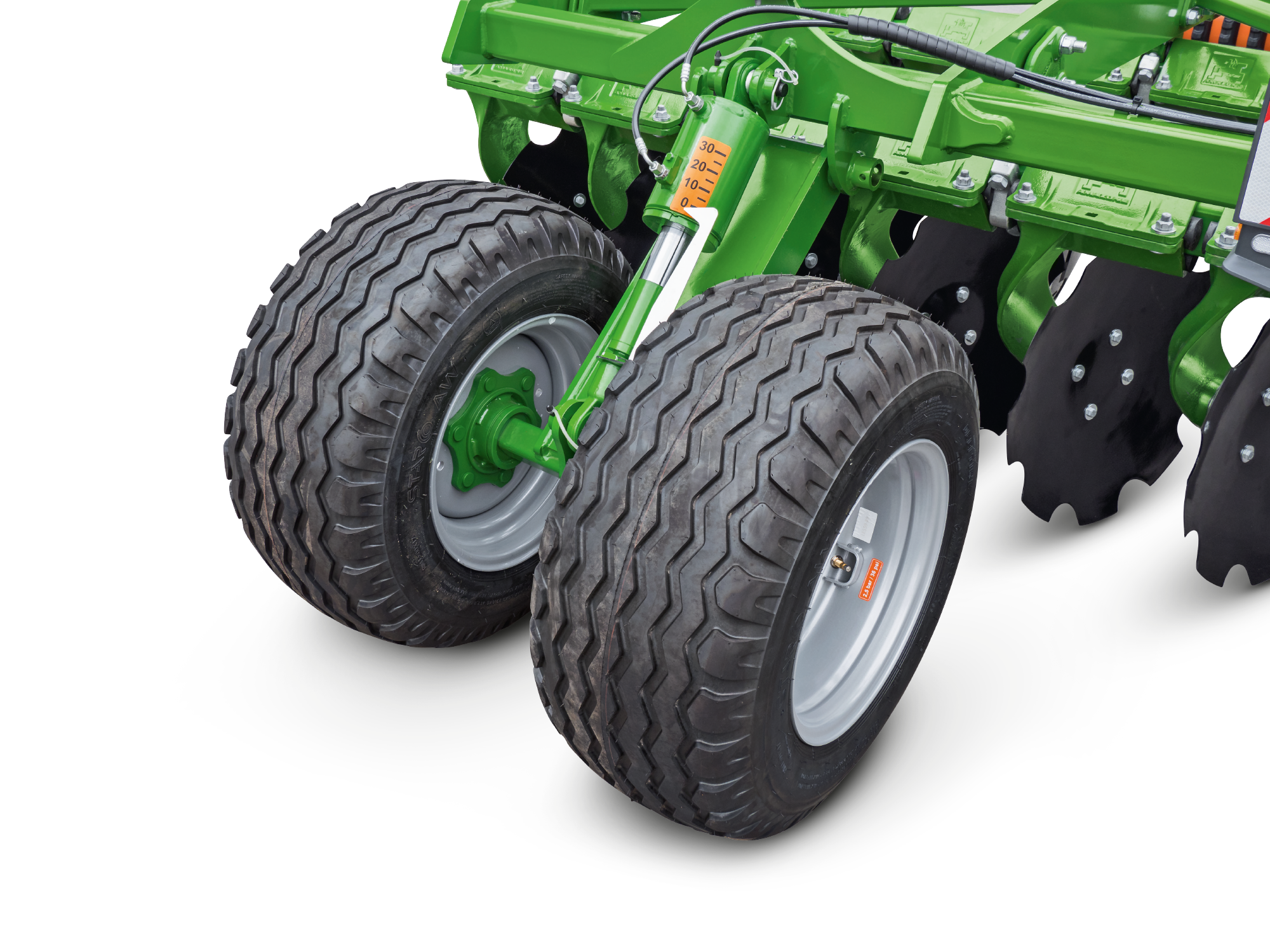 A beépített középső futómű 700/40-22,5, 550/45-22,5 vagy 400/60-22,5 abroncsozással felszerelve gondoskodik a gép kiváló fordulékonyságáról a szántóföldön és közúton egyaránt. A futómű pozíciója jó tömegelosztást garantál, és lehetővé teszi az összes AMAZONE elmunkáló henger használatát, így mindig a talajviszonyoknak leginkább megfelelő henger választható. A gép billegésének megakadályozására a Certos-2TX szériafelszereltségként vonórúd-csillapítással rendelkezik, melynek nyomása helyzettől függően beállítható.