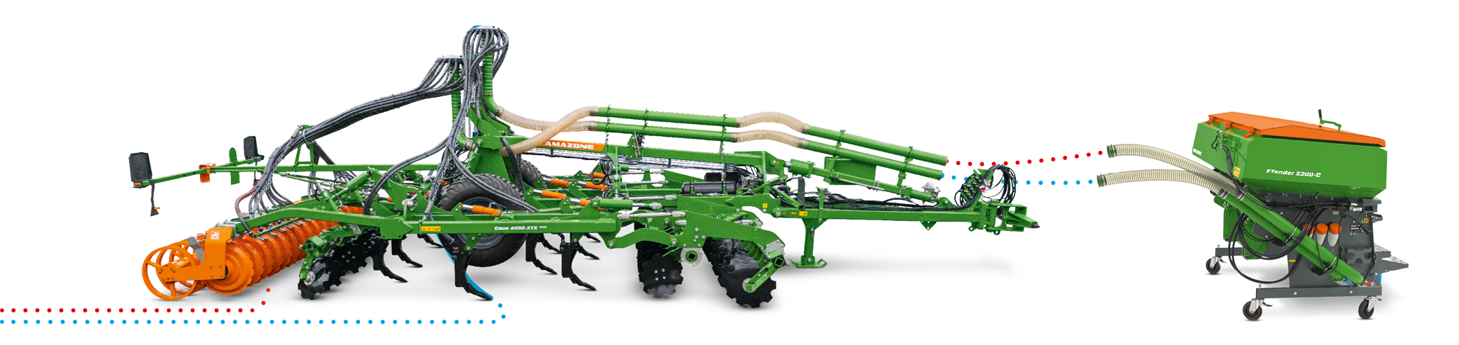 Az XTender (függesztett) tartállyal az AMAZONE két hátsó tartályt is kínál 4200 literes térfogattal. A hátsó tartály ráadásul kétkamrás nyomótartállyal is rendelkezik, hogy egyszerre kétféle anyagot, pl. műtrágyát és vetőmagot is ki lehessen juttatni.