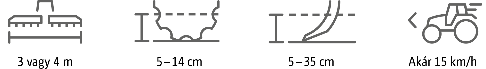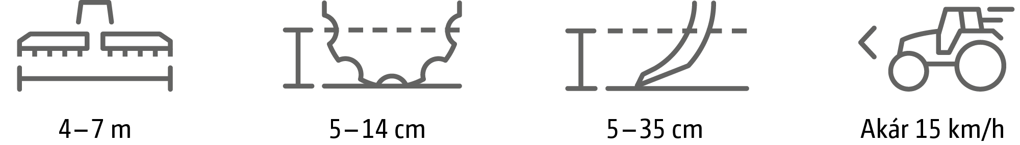 - Pontos mélységtartás vonórúddal és tömörítőhengerrel vagy kiegészítő támkerékkel, 6 m és nagyobb munkaszélességeknél