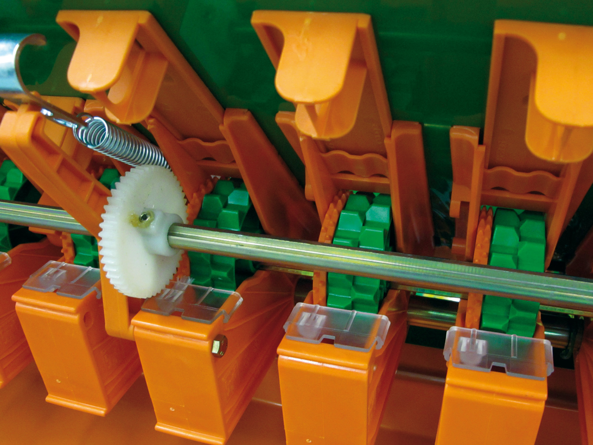 A Vario hajtómű emellett nem igényel karbantartást és egyszerűen kezelhető. A keverőtengelyt repce vetésekor egy rugós biztosítószeg kihúzásával lehet üzemen kívül helyezni. A gép néhány mozdulattal előkészíthető a kalibráláshoz.