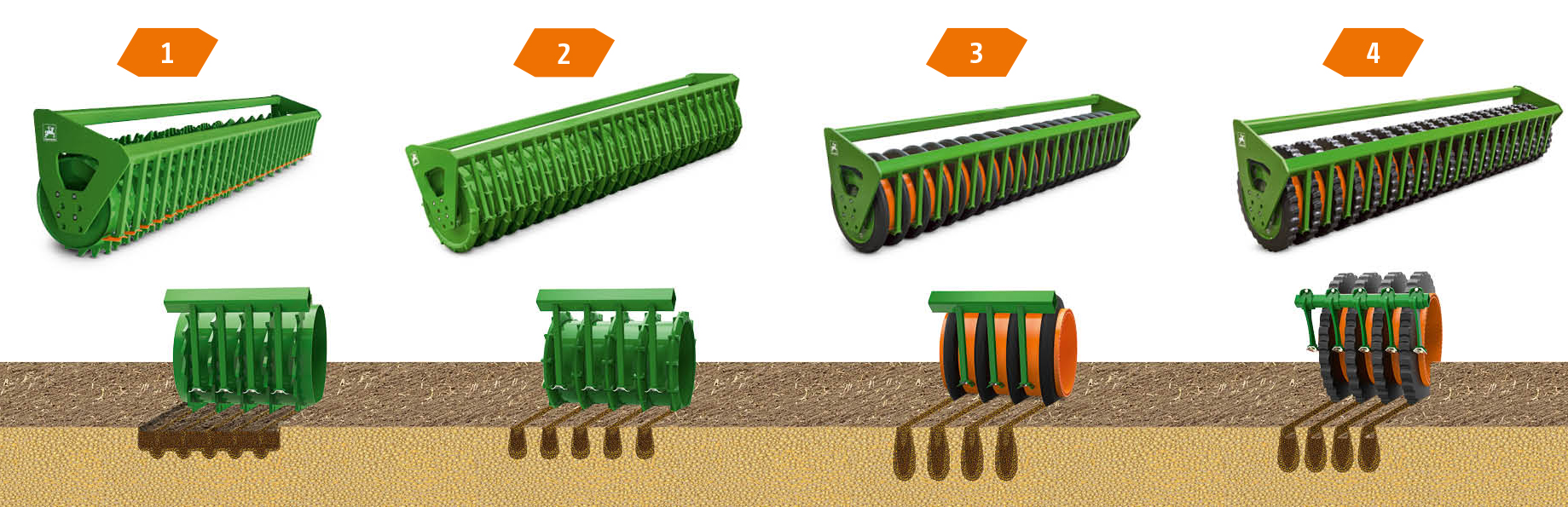 A henger kiválasztásához különböző típusok állnak rendelkezésre, így a komplett talajművelő berendezés tökéletesen testre szabható az adott terepviszonyokhoz.