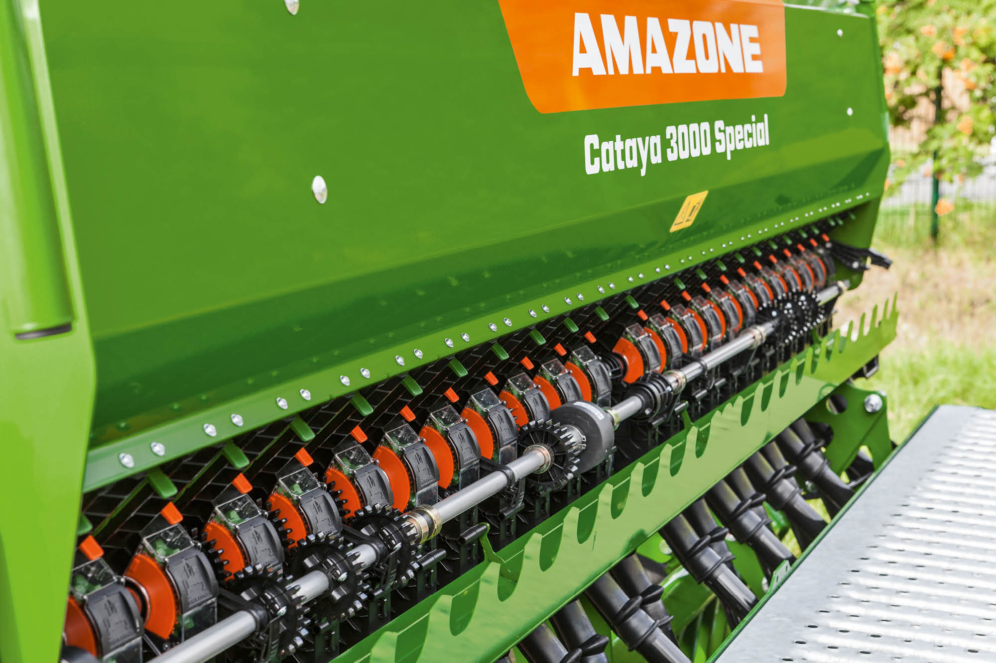 A mechanikus talajkerékhajtás megbízható, ugyanakkor egyszerű és költséghatékony megoldás a Cataya Special vetőgép számára. A nagy hajtókerék gondoskodik a vetőtengely egyenletes és megbízható hajtásáról.