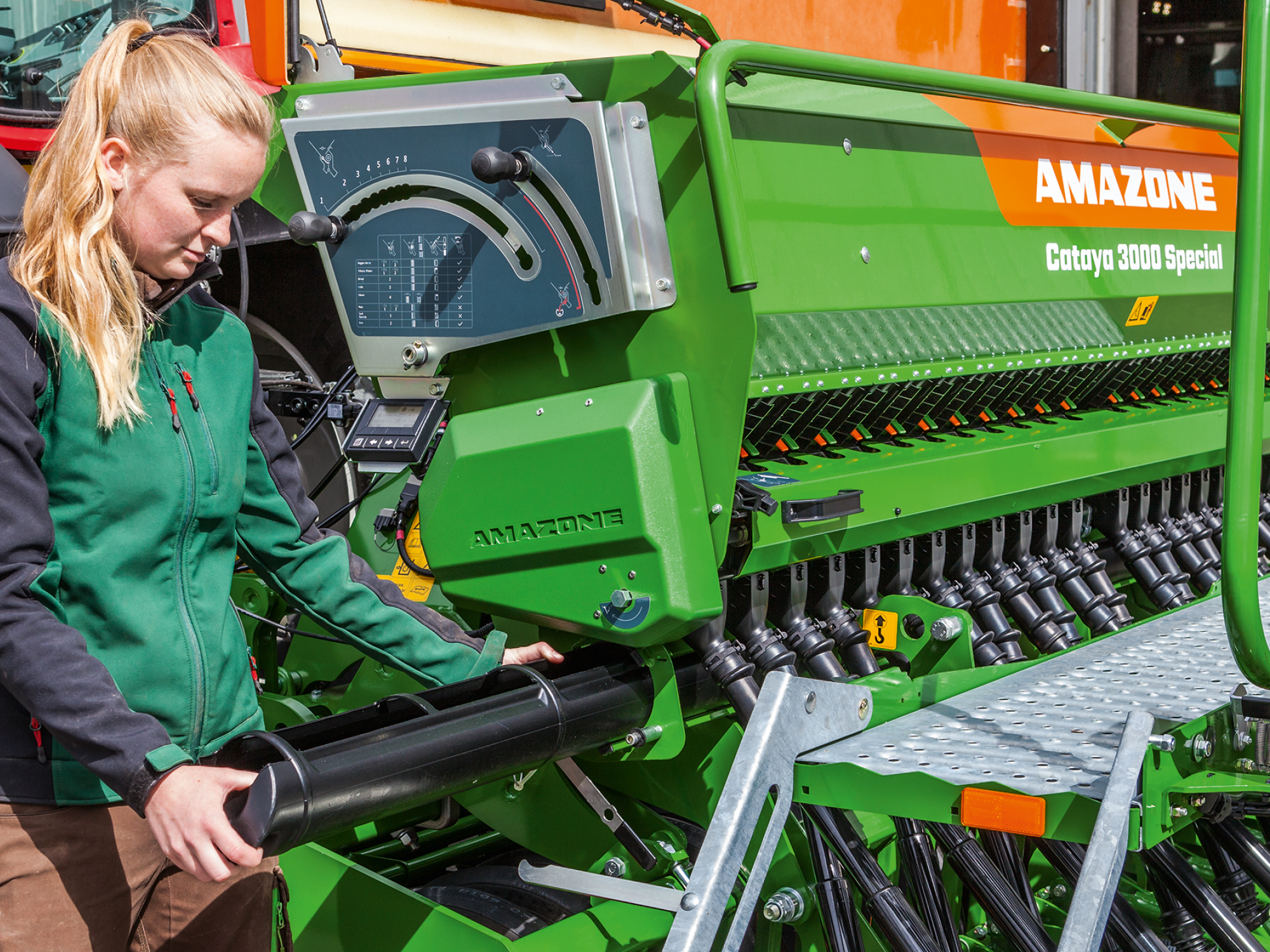 Az AMAZONE a legfontosabb beállításokat egyszerű és áttekinthető módon az új SmartCenter-be helyezte, ezzel tovább egyszerűsítette a kezelők munkáját. Az adagolórendszer a gép bal oldaláról központilag és gyorsan beállítható és kalibrálható. Az opcionális TwinTerminal segítségével ez még egyszerűbb. A kalibrálás kényelmesen elvégezhető a bal oldalról.