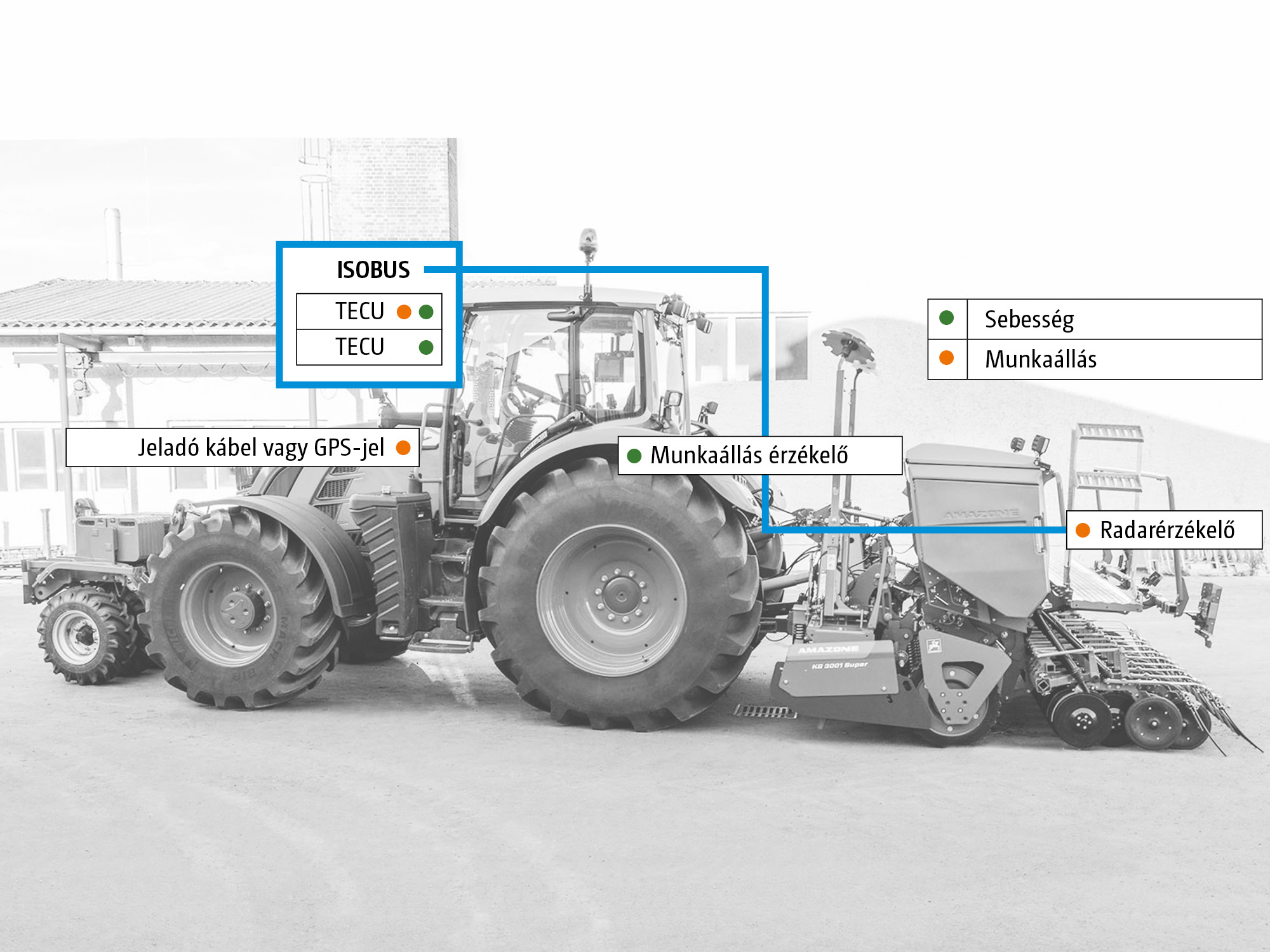 • A vetőmagmennyiség egyszerű beállítása a traktor vezetőfülkéjéből. Alternatív módon automatikusan, részterület-specifikusan is, alkalmazási térképek alapján