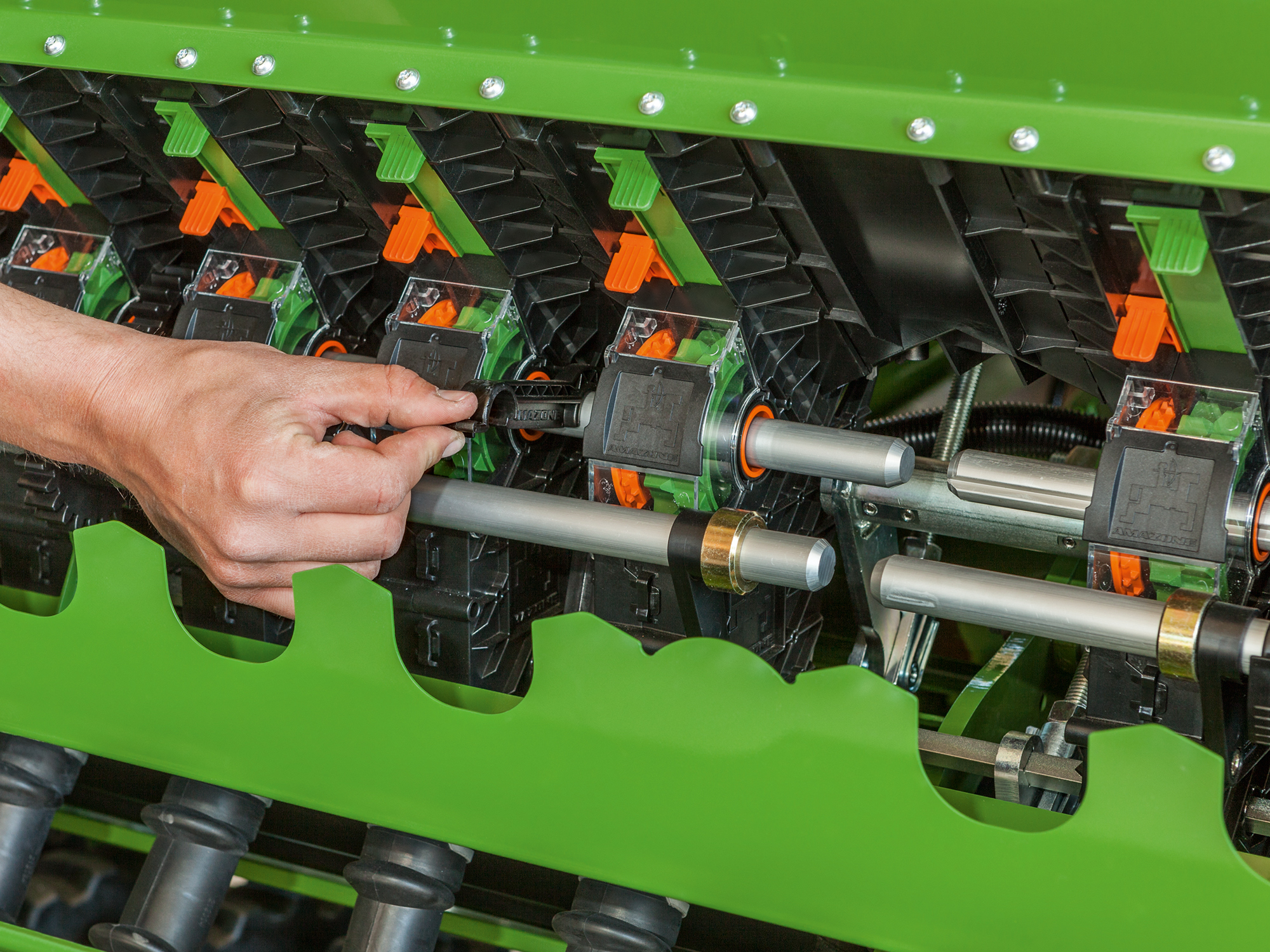 A beépített kifolyógaratnak köszönhetően nem marad visszamaradó mennyiség a vetőmagtartályban, így a fajtaváltás gyorsan és tisztán elvégezhető. Az apró szemű vetőmagról normál szemű vetőmagra való átváltás az elzáró tolózár által valósul meg. Még a vetőkerék kicserélése is problémamentesen lehetséges az adagolórendszer kialakítása miatt.