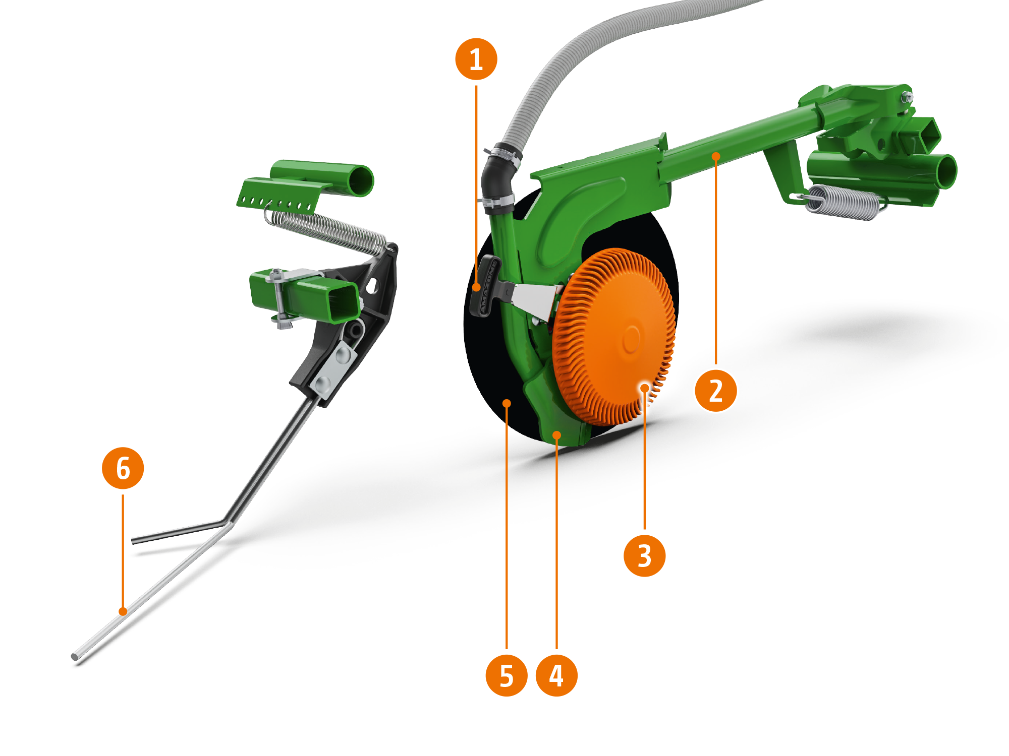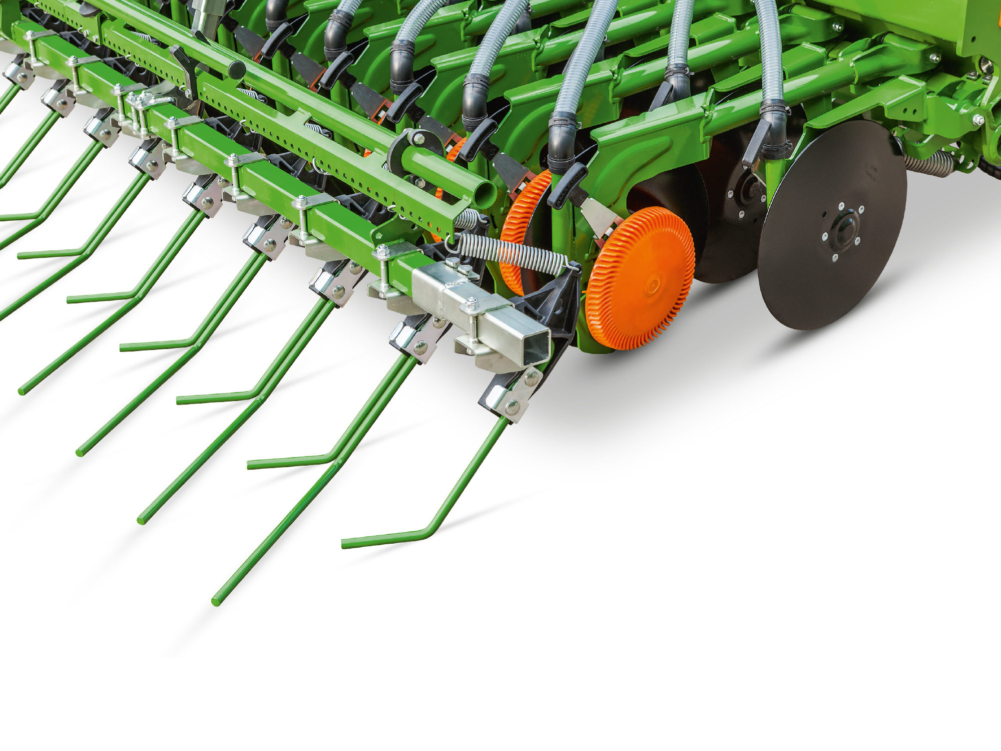- Control 10 mélységhatároló tárcsa vagy Control 25 mélységhatároló görgő az egyenletes mélységtartáshoz. A mélységhatároló elem aktívan tisztítja a vetőtárcsát használat közben.