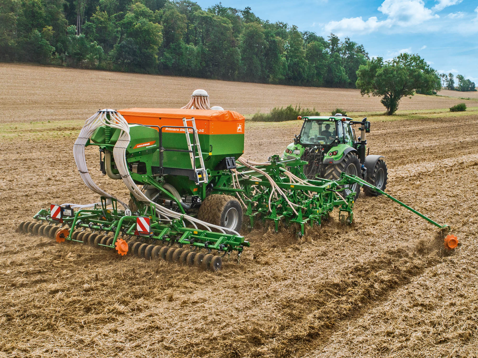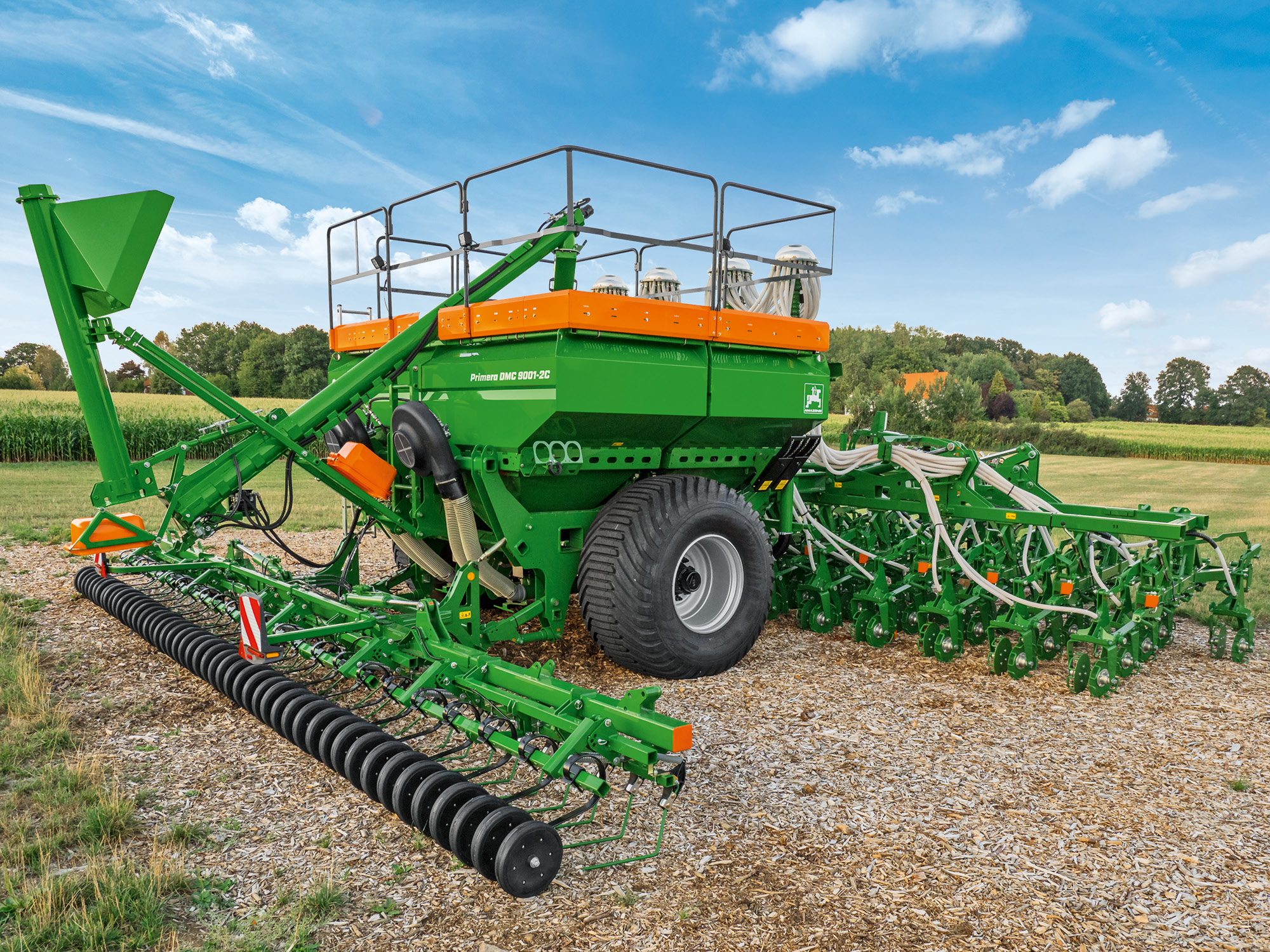 A Primera DMC tartályának vetőmaggal és műtrágyával való feltöltéséhez az AMAZONE hidraulikus hajtású feltöltőcsigát kínál. Használata akár 15 perccel lerövidítheti a feltöltési időt, és ennek megfelelően tovább növelheti a gép munkateljesítményét.