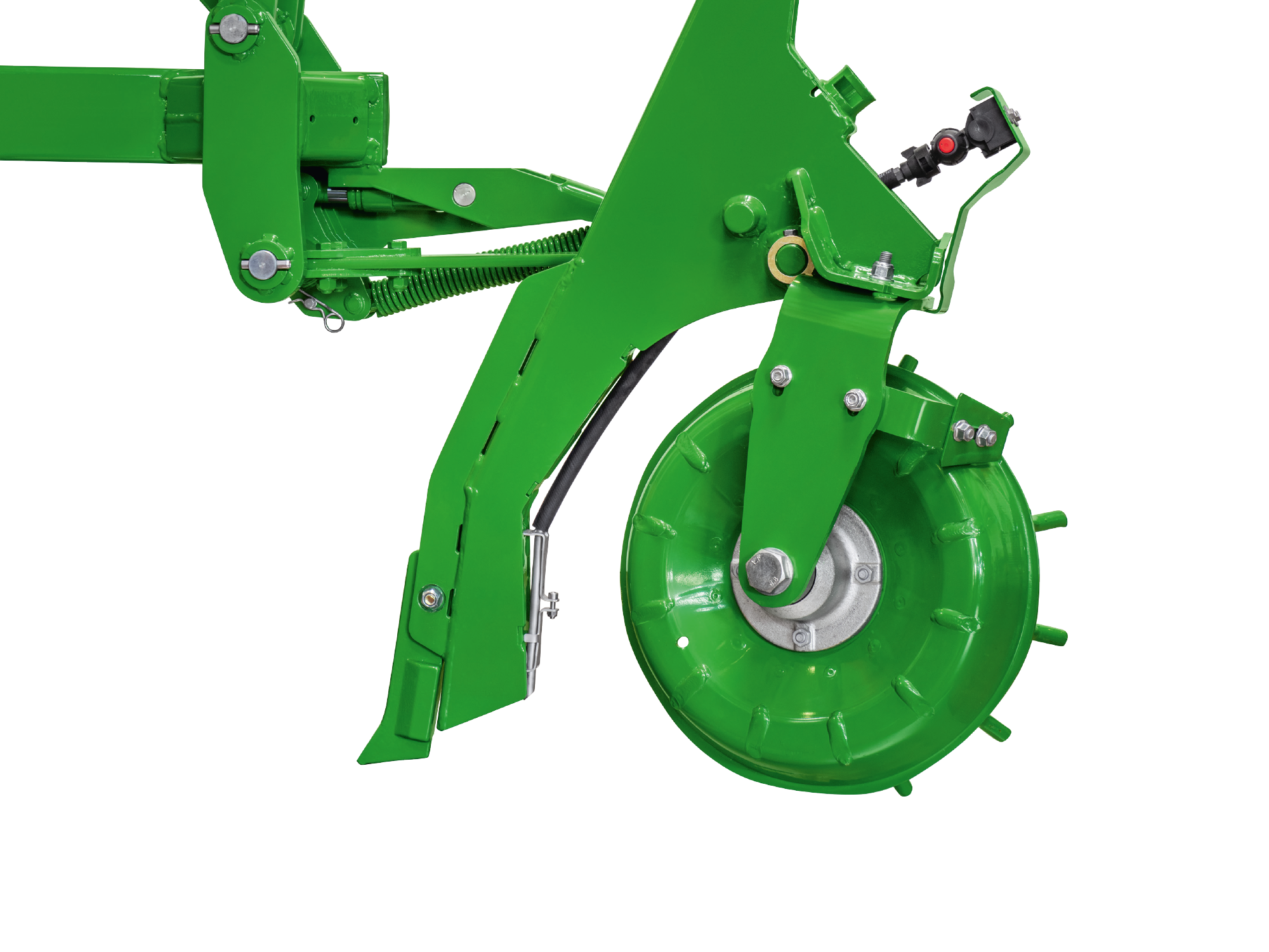 A vetési mélység egyszerűen, forgatókarokkal állítható be csoportonként, központilag minden csoroszlyamodulon – nagyon egyszerűen és gyorsan.