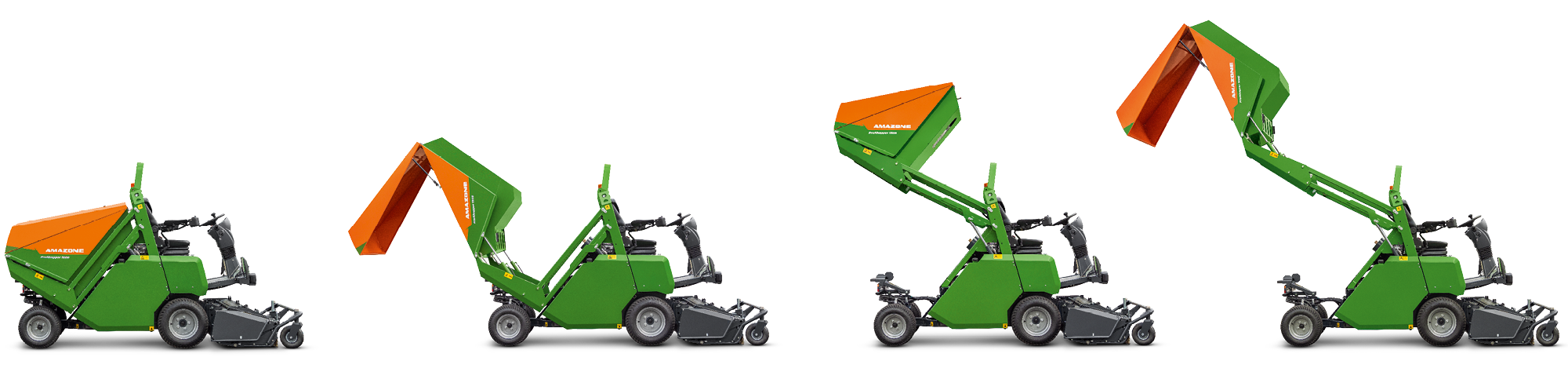 A magasemelésű ürítéssel az ürítés a Profihopper 1250 esetén 2,1 méteres, míg a Profihopper 1500 esetén 2,5 méteres magasságba emelve végezhető. Az átadási pont hátrébb került, így a magas konténer is optimálisan feltölthető – mégpedig kényelmesen a vezetőállásból. Ez csak néhány pillanatot vesz igénybe – és máris folytatható a munka.