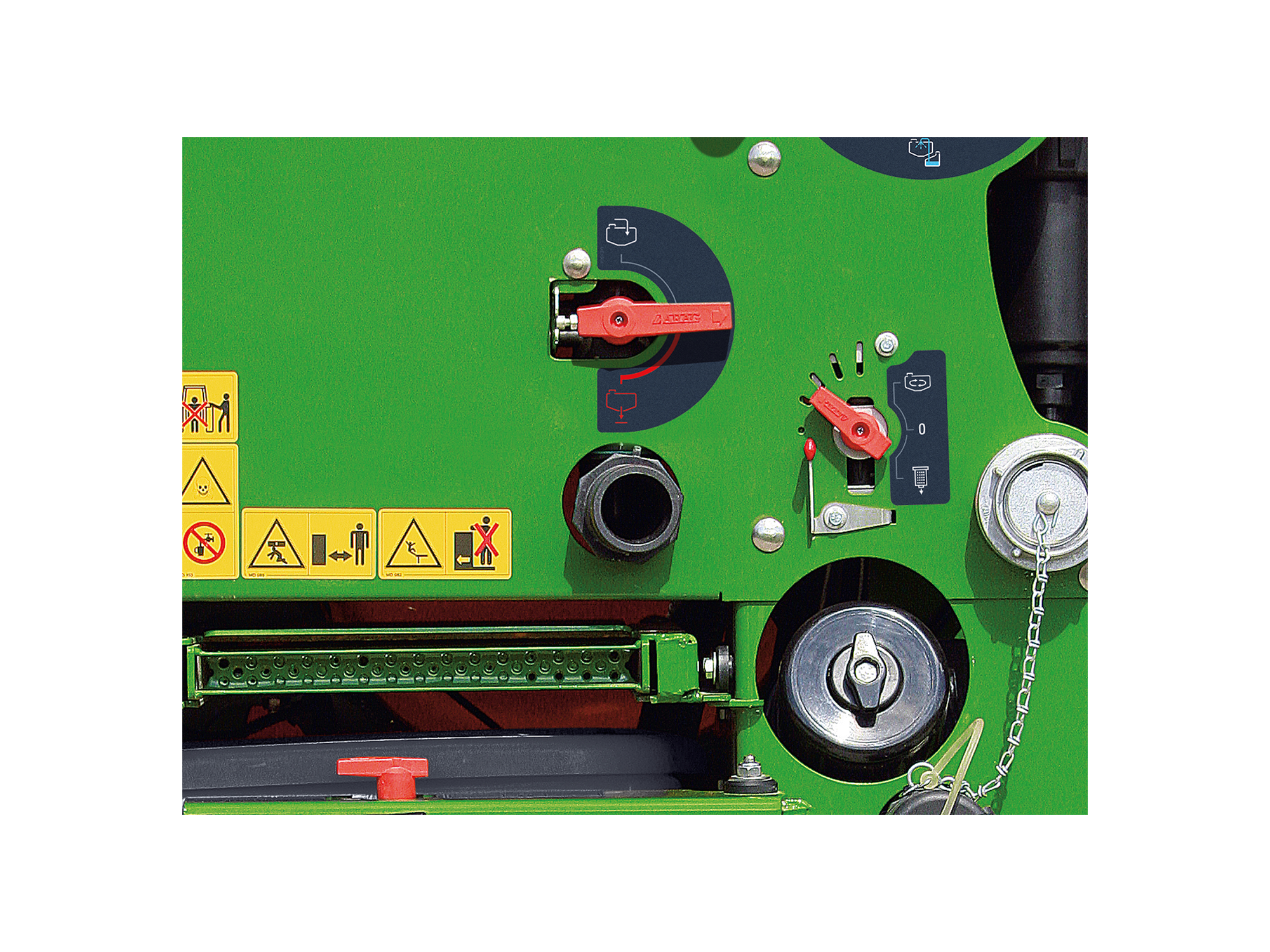 A permetezőgép feltölthető a 2"-os szívócsatlakozón keresztül egy szívótömlővel. A folyadék áramoltatása úgy van kialakítva, hogy a keverőtartálynál a szívási folyamat közben mindig tiszta víz áll rendelkezésre.